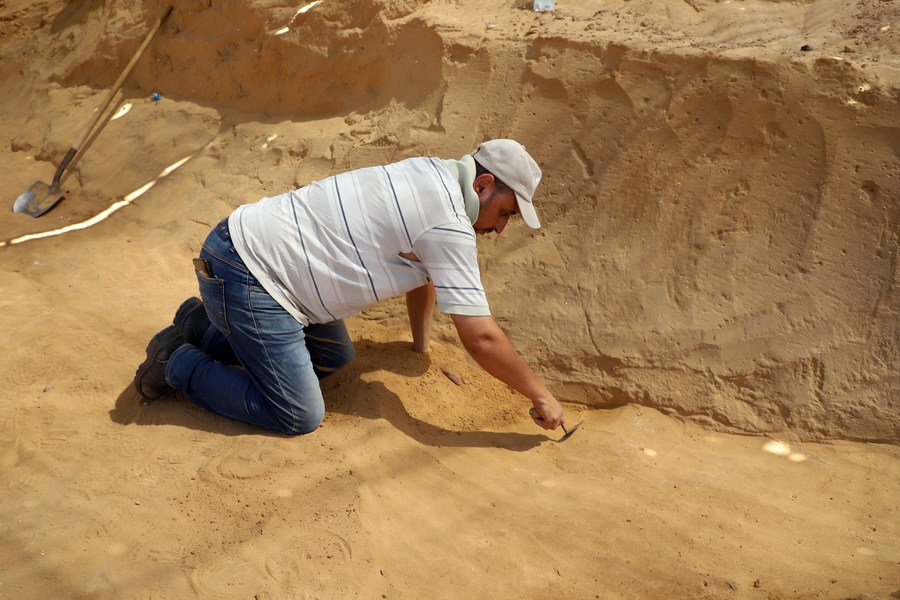 "The new sarcophagus was found during excavation work inside a cemetery discovered in March 2022 in the northern Gaza Strip," Jamal Abu Rida, director-general of the ministry, told Xinhua.