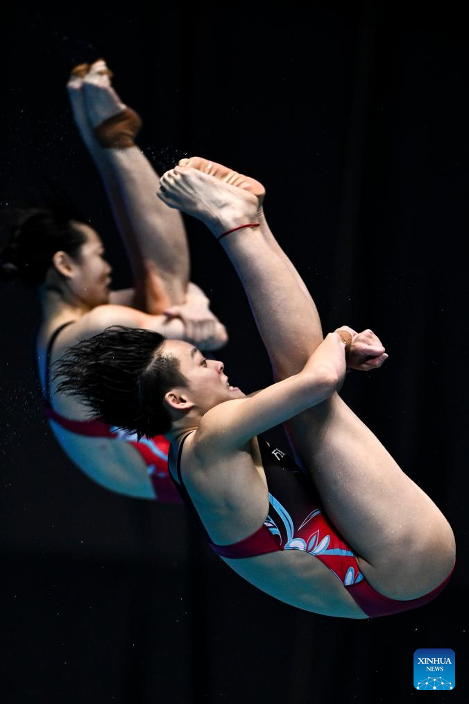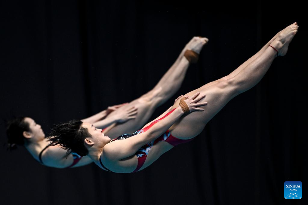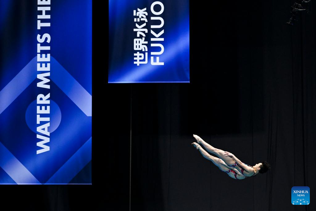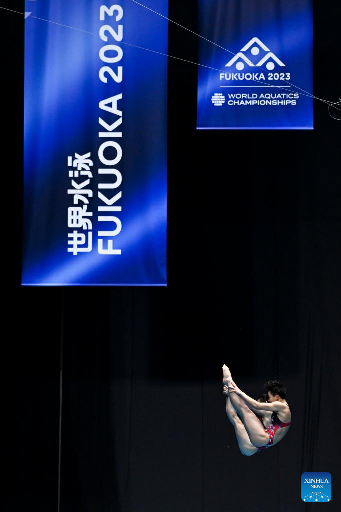 Chen Yiwen (front) /Chang Yani of China compete during the women's 3m synchronised final of the World Aquatics Championships 2023 in Fukuoka, Japan, July 17, 2023. (Xinhua/Xu Chang)