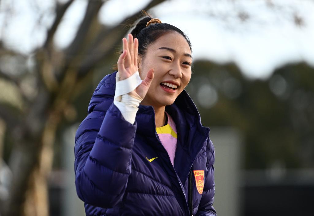Xu Huan of China waves to football fans during a training session at the Croatian Sports Centre in Adelaide, south Australia, July 18, 2023. Croatian Sports Centre is functioned as Team China's Team Base Camp for the upcoming FIFA Women's World Cup Australia & New Zealand 2023. (Xinhua/Li Yibo)