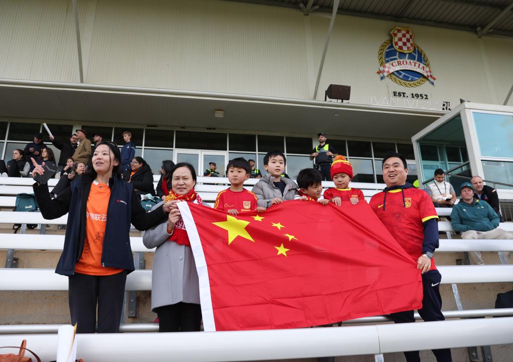 Supporters of China cheer for the team during a training session at the Croatian Sports Centre in Adelaide, south Australia, July 18, 2023. Croatian Sports Centre is functioned as Team China's Team Base Camp for the upcoming FIFA Women's World Cup Australia & New Zealand 2023. (Xinhua/Ding Xu)