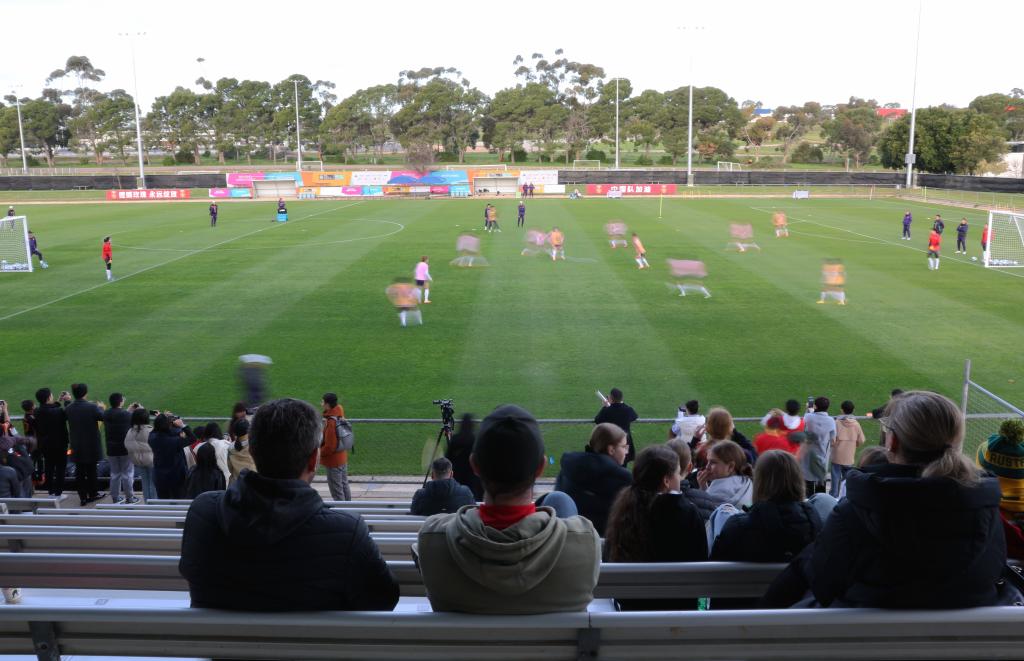 Spectators watch Team China at a training session at the Croatian Sports Centre in Adelaide, south Australia, July 18, 2023. Croatian Sports Centre is functioned as Team China's Team Base Camp for the upcoming FIFA Women's World Cup Australia & New Zealand 2023. (Xinhua/Ding Ting)