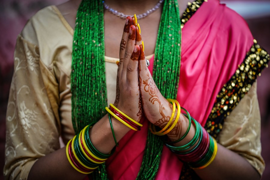 A devotee prays on the first Monday of the holy month of Shrawan in Lalitpur, Nepal, July 17, 2023. (Photo by Hari Maharjan/Xinhua)