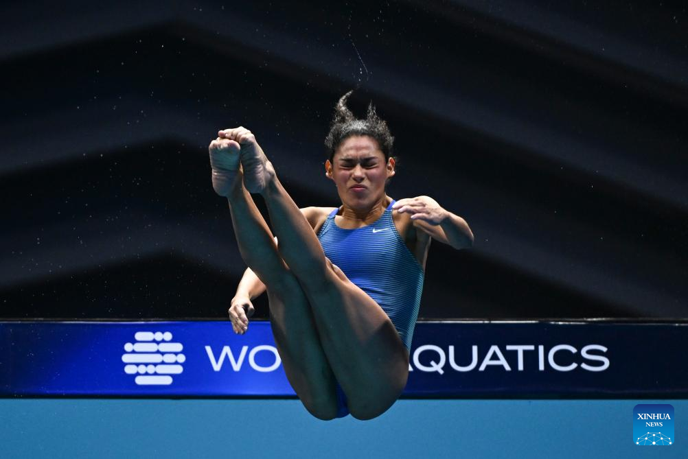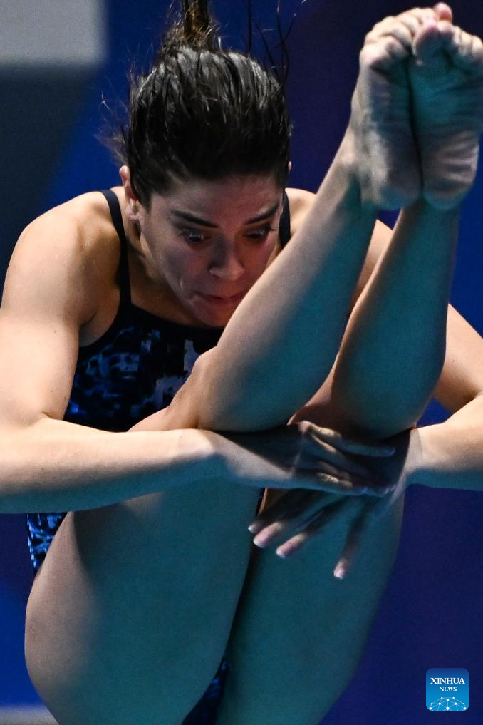 Gabriela Aundez Garcia of Mexico competes during the women's 10m platform final of the World Aquatics Championships 2023 in Fukuoka, Japan, July 19, 2023. (Xinhua/Xu Chang)