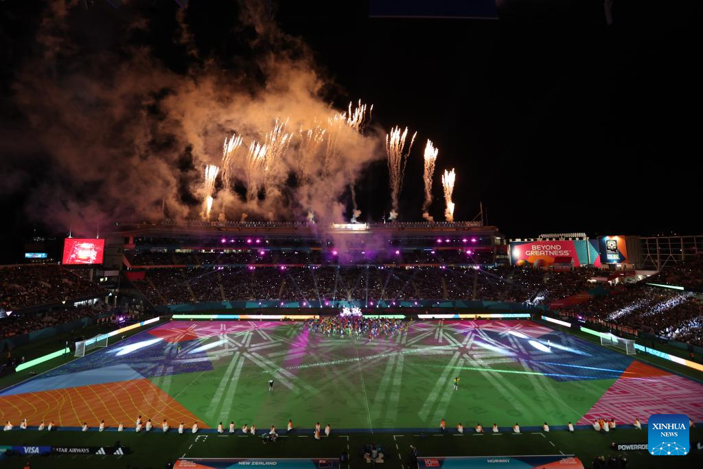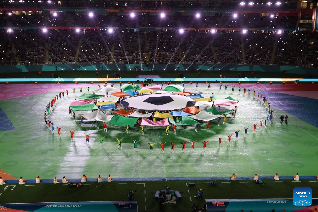 Photo taken on July 20, 2023 shows the opening ceremony before the Group A match between New Zealand and Norway at the FIFA Women's World Cup Australia & New Zealand 2023 in Auckland, New Zealand. (Xinhua/Bai Xuefei)