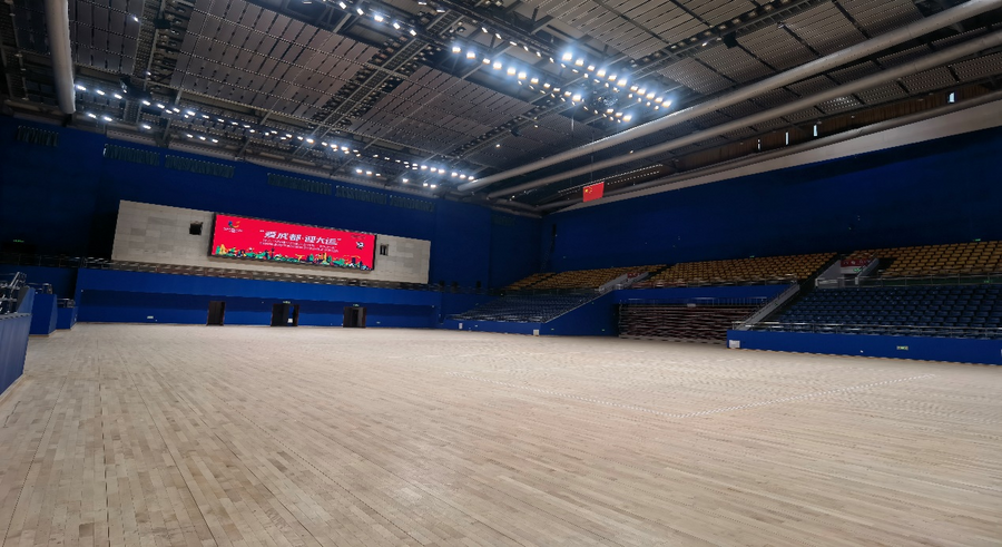 Qingbaijiang Sports Center Gymnasium has a floor area of 11,800 square meters, with one floor of main structure and three floors of local structures. The field of play measures 54m by 34m, and the net height is 29 meters.