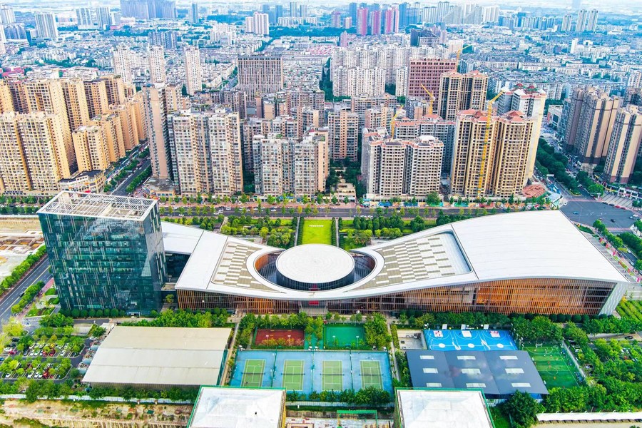 An aerial view of Qingbaijiang Sports Center Gymnasium. (Photo courtesy of Chengdu Universiade website)