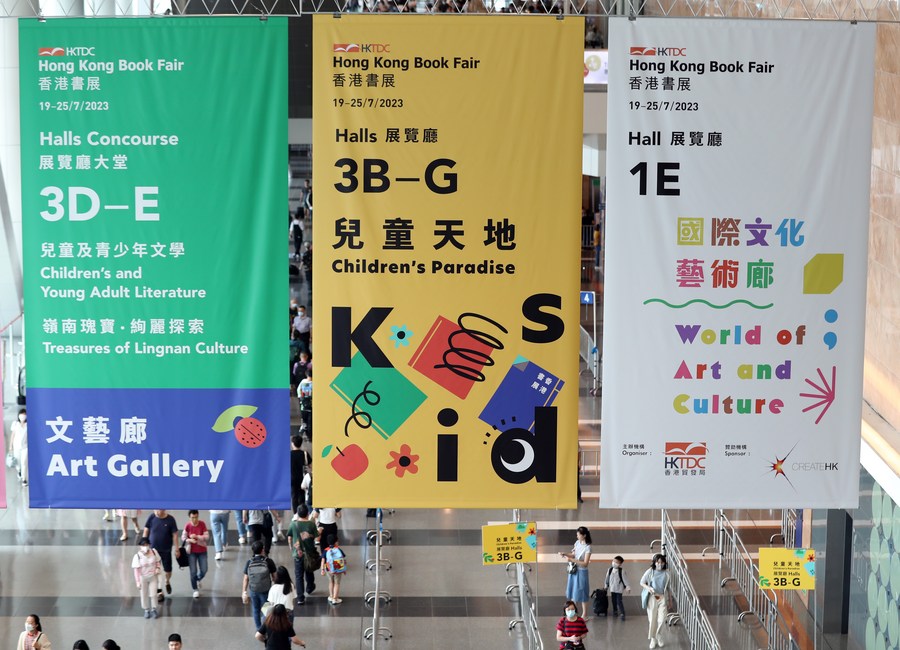 Photo taken on July 19, 2023 shows the 33rd Hong Kong Book Fair in Hong Kong, south China. (Xinhua/Li Gang)