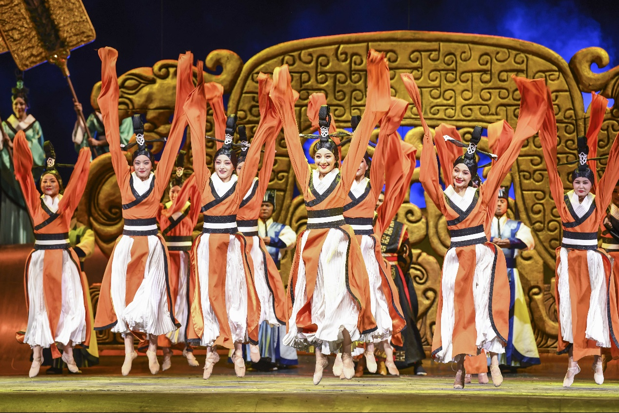 Actors perform during the opening ceremony of the 6th China Xinjiang International Dance Festival in Urumqi, northwest China's Xinjiang Uygur Autonomous Region, July 20, 2023.