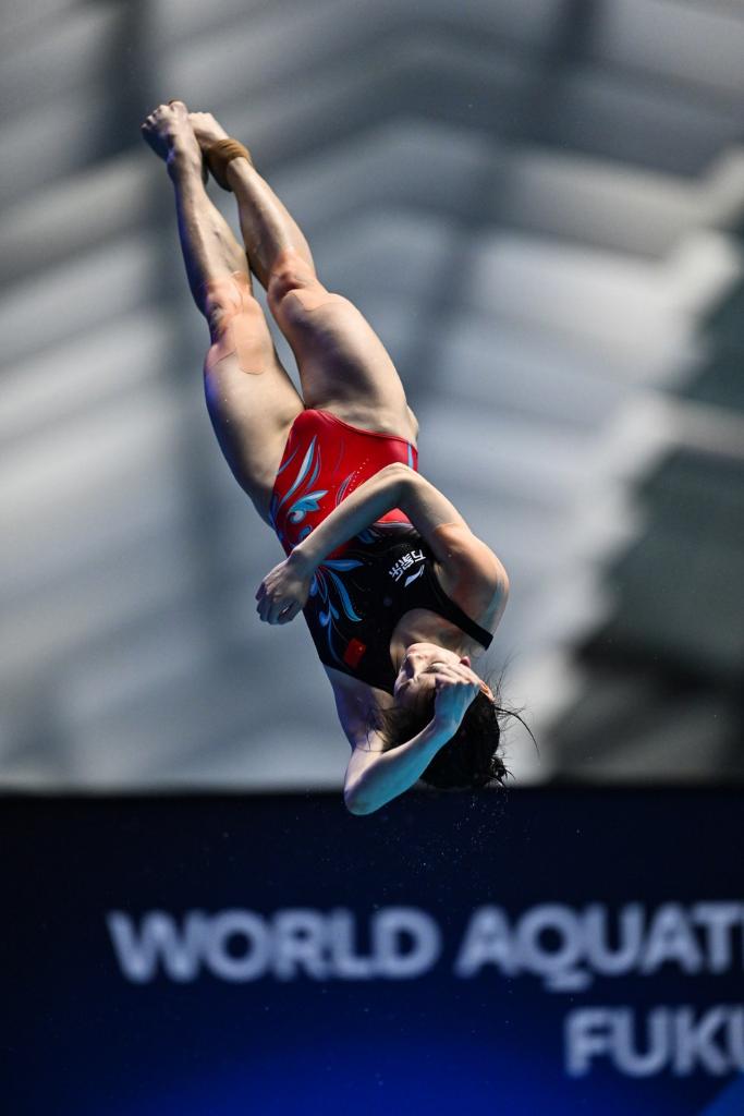 Chang Yani of China competes in the women's 3m springboard final of World Aquatics Championships 2023 held in Fukuoka, Japan, on July 21, 2023. (Xinhua/Zhang Xiaoyu)