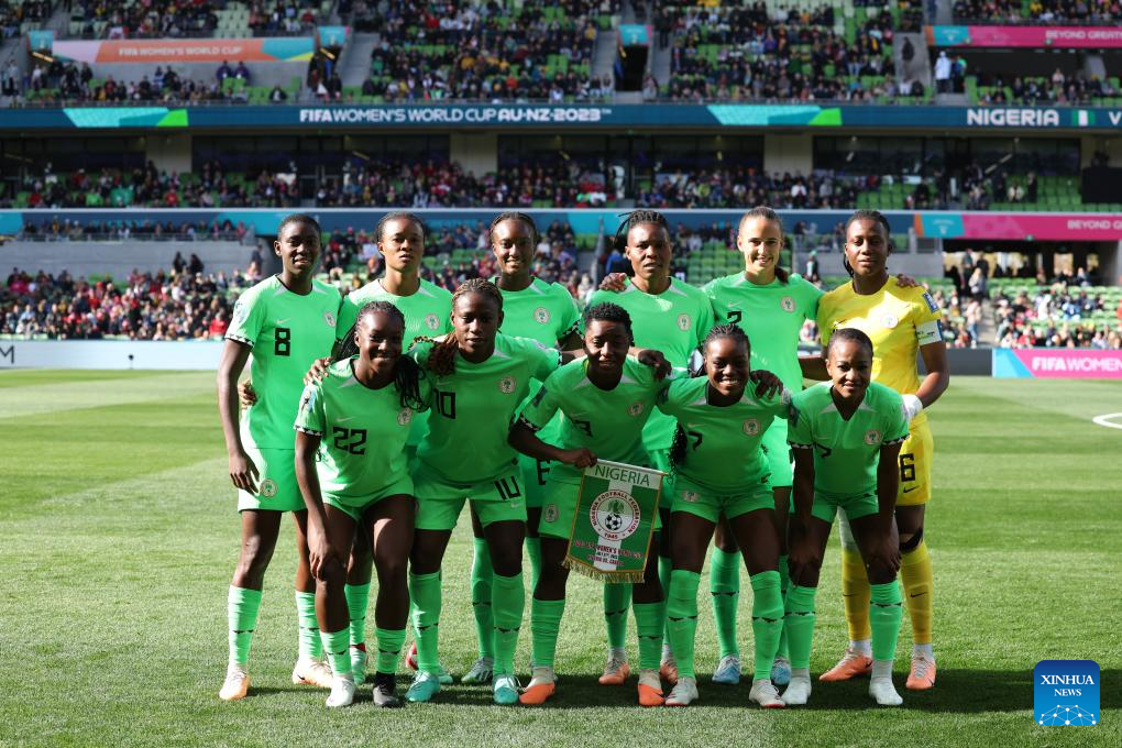 Players of Nigeria line up for a team photo before the Group B match between Canada and Nigeria at 2023 FIFA Women's World Cup in Melbourne, Australia, July 21, 2023. (Xinhua/Zhang Chen)