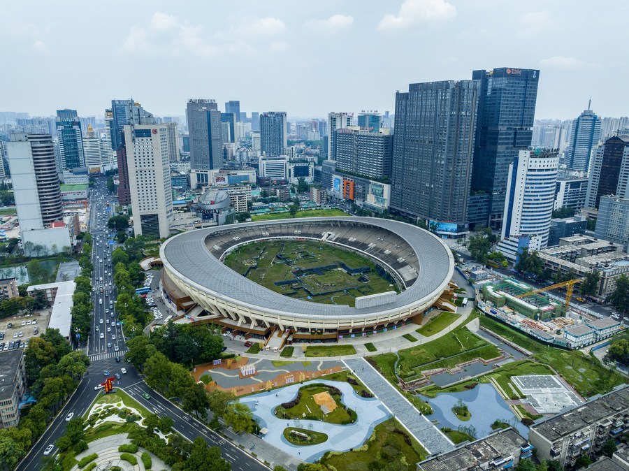 This aerial photo taken on July 20, 2023 shows an outdoor historical relics park in Chengdu, capital of southwest China's Sichuan Province. An outdoor historical relics park opened a new area to public on Thursday in Chengdu. The relics park is located in the core area of the old city of Chengdu. Since 2013, archaeologists have discovered a large area of ancient city remains from Donghuamen Street to Chengdu Sports Center in Qingyang District of Chengdu, with an excavated area of about 49,000 square meters, mainly including relics of Warring States Period (475-221 BC), Qin (221-207 BC) and Han (202 BC-220 AD) dynasties, Sui and Tang Dynasties (581-907), Song Dynasty (960-1279) and Ming Dynasty (1368-1644). (Xinhua/Shen Bohan)