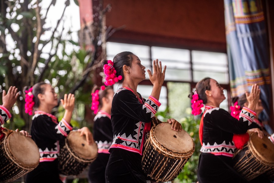 Villagers dance at Banli Village of Lancang Lahu Autonomous County, southwest China's Yunnan Province, July 20, 2023. In recent years, Lancang Lahu Autonomous County has harnessed its rich cultural and tourism resources, promoting high-quality integration of culture and tourism through industrial linkage and improving service systems. According to statistics, the county received over 3 million tourists from January to May in 2023, generating a comprehensive tourism revenue of 3.388 billion Yuan (about 0.47 billion U.S. dollars). (Xinhua/Hu Chao)
