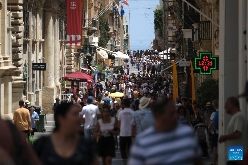 People walk on a street in Valletta, Malta, on July 24, 2023. (Photo by Jonathan Borg/Xinhua)