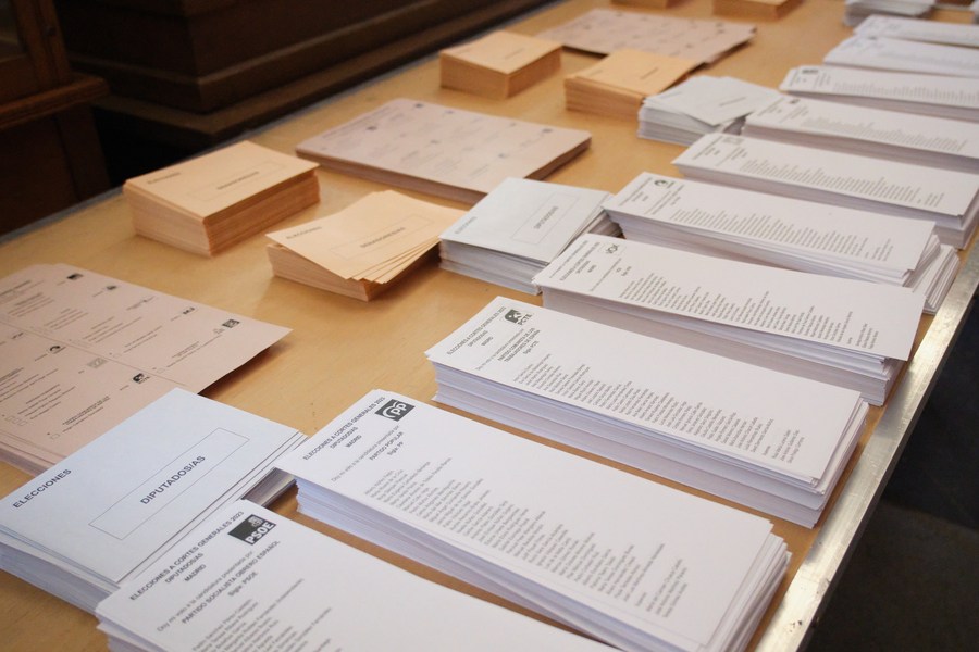 This photo taken on July 23, 2023 shows ballots at a polling station in Madrid, Spain. (Xinhua/Meng Dingbo)
