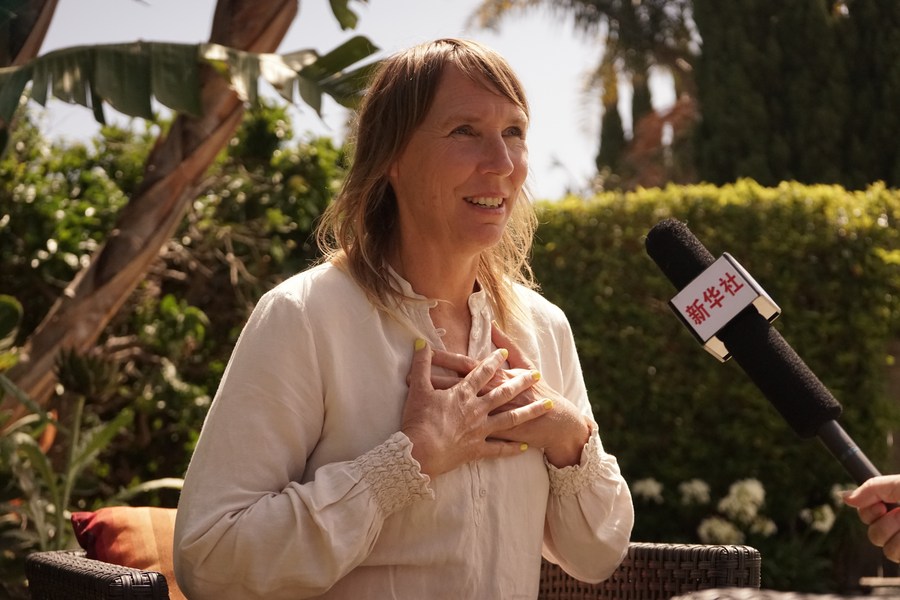 Kelly Herbinson, Co-Executive Director of the Mojave Desert Land Trust, speaks during an interview in Ventura, California, the United States, on July 18, 2023. (Photo by Zeng Hui/Xinhua)