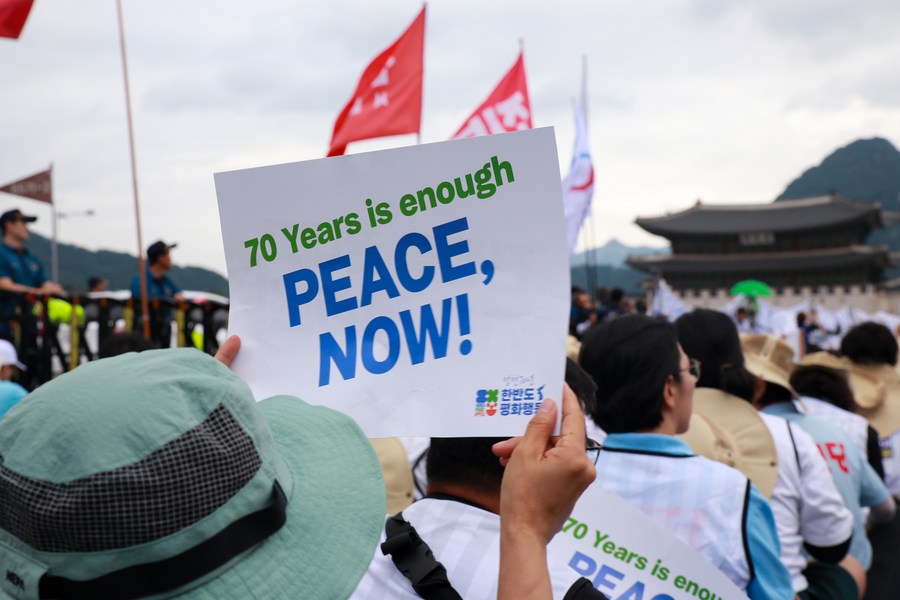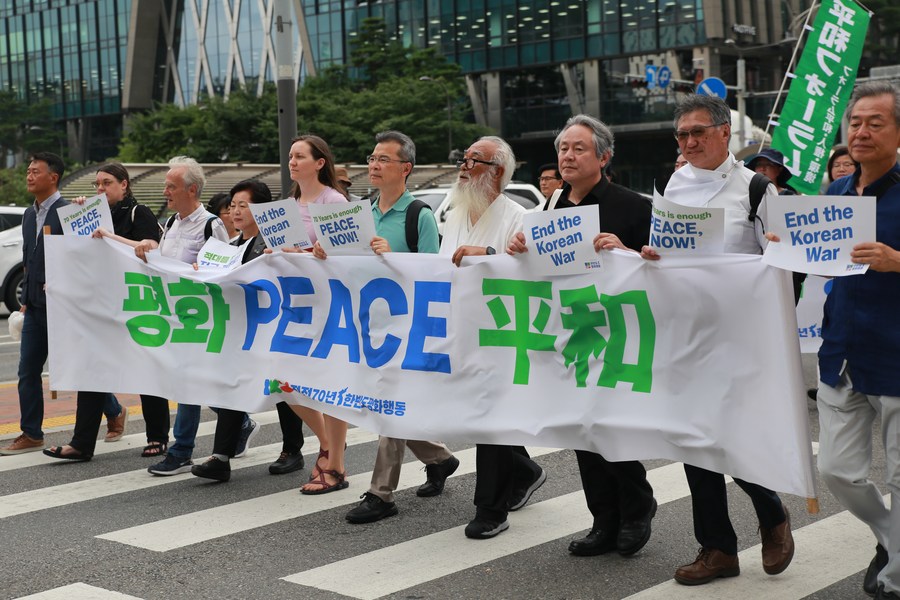 The Korea Peace Appeal, which organized a peace rally marking the 70th anniversary of the armistice treaty that falls on July 27, said in a statement that the participants marched and shouted the slogans to remove the dark clouds of war, which shrouded the peninsula, and create a new history of peace in the world.