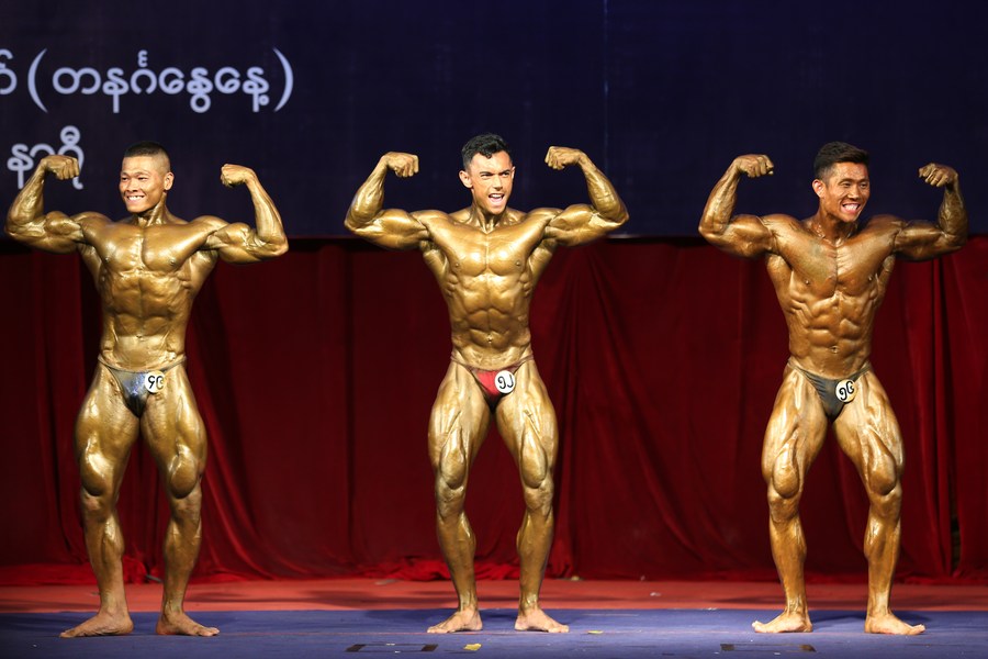 YANGON, July 24 (Xinhua) -- Contestants joined the Region and State Bodybuilding and Physique Sports Competition in Yangon, Myanmar, showing the achievements they have made through hard workouts.