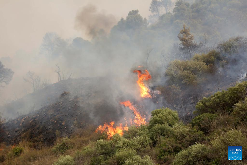 Photo taken on July 24, 2023 shows a wildfire in Bouira Province, Algeria. The death toll from wildfires in northern Algeria has risen to 34, including 10 soldiers, the Interior Ministry said in an update on Monday. (Xinhua)