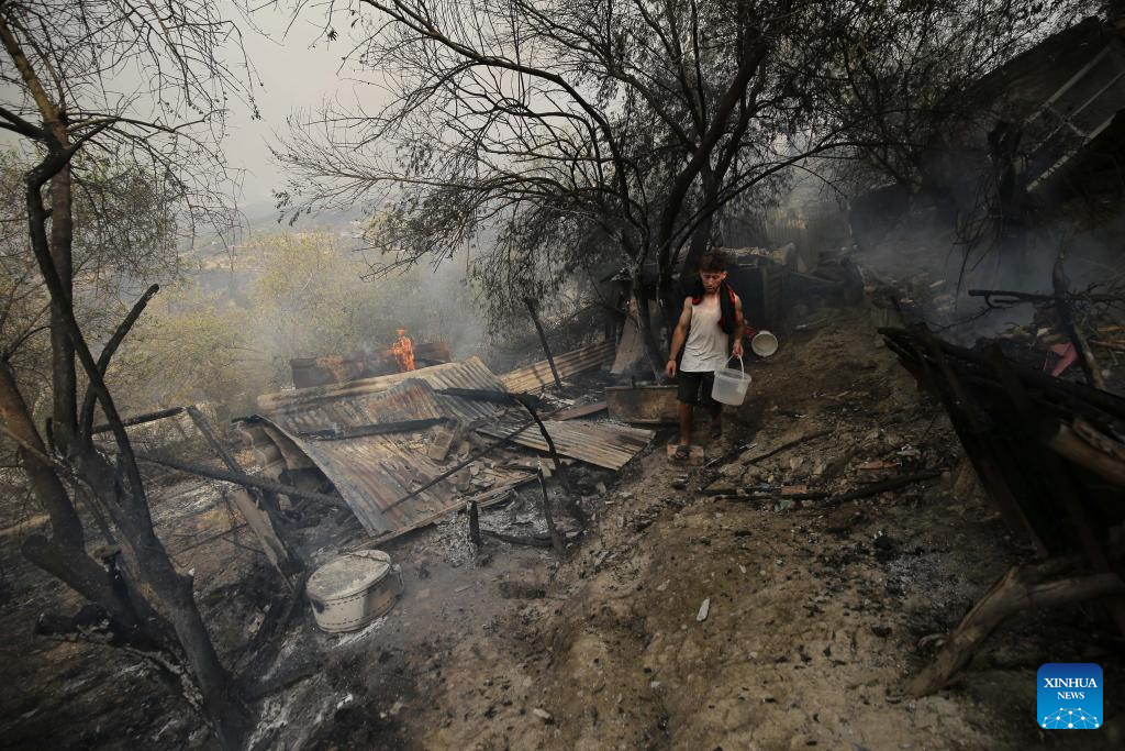 A man walks past a house burned down in a wildfire in Bouira Province, Algeria, on July 24, 2023. The death toll from wildfires in northern Algeria has risen to 34, including 10 soldiers, the Interior Ministry said in an update on Monday. (Xinhua)