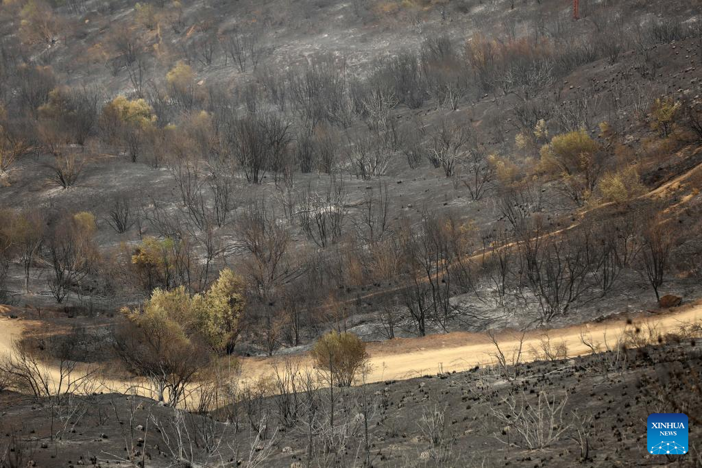 Photo taken on July 24, 2023 shows trees burned in a wildfire in Bouira Province, Algeria. The death toll from wildfires in northern Algeria has risen to 34, including 10 soldiers, the Interior Ministry said in an update on Monday. (Xinhua)