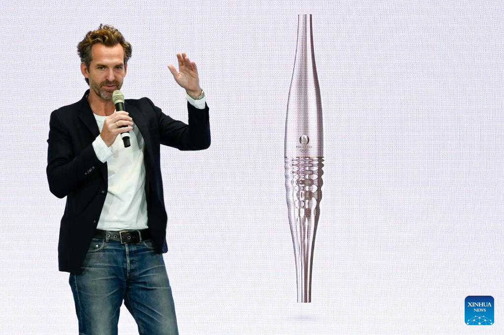 PARIS, July 25 (Xinhua) -- The design of the Paris 2024 Olympic and Paralympic torch was unveiled on Tuesday, marking almost a year until the opening ceremony of the Paris Olympic Games.