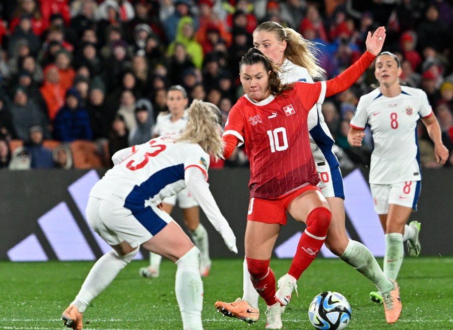 Ramona Bachmann (C) of Switzerland in action during their Group A match against Norway at the 2023 FIFA Women's World Cup in Hamilton, New Zealand on July 25, 2023. (Xinhua/Guo Lei)