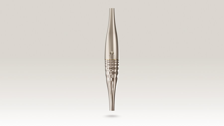 The torch, measuring 70 centimeters, is made with lightweight radiant steel and is distinguished by its champagne color. The lower half features a relief pattern that mimics the movement of the River Seine, along which the opening ceremony will be held, with more than half a million spectators expected.