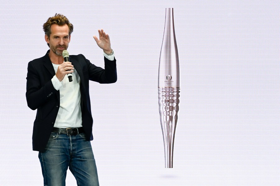 PARIS, July 25 (Xinhua) -- The design of the Paris 2024 Olympic and Paralympic torch was unveiled on Tuesday, marking almost a year until the opening ceremony of the Paris Olympic Games.