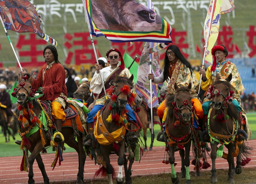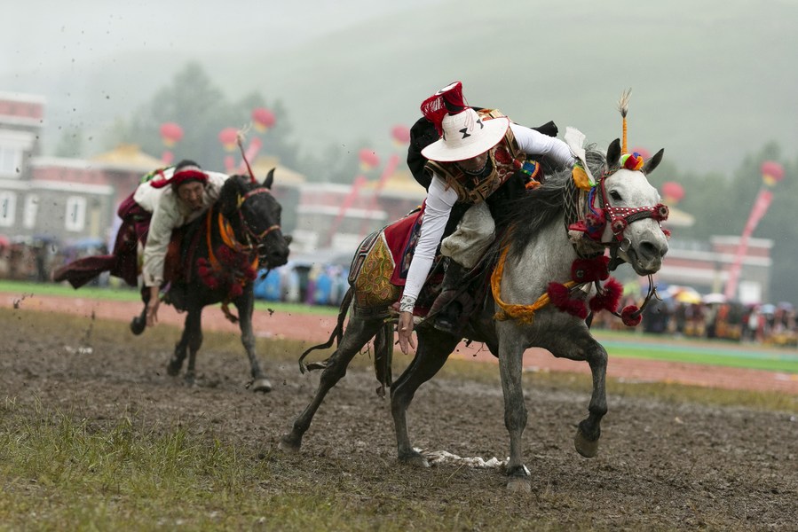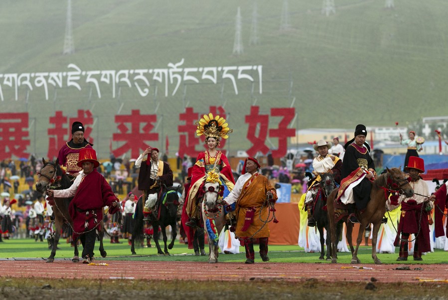 YUSHU, July 25 (Xinhua) -- A horse racing festival kicked off in Yushu Tibetan Autonomous Prefecture of Qinghai on Tuesday featuring dance and music shows, horse racing demonstrations, and open-air art performances.