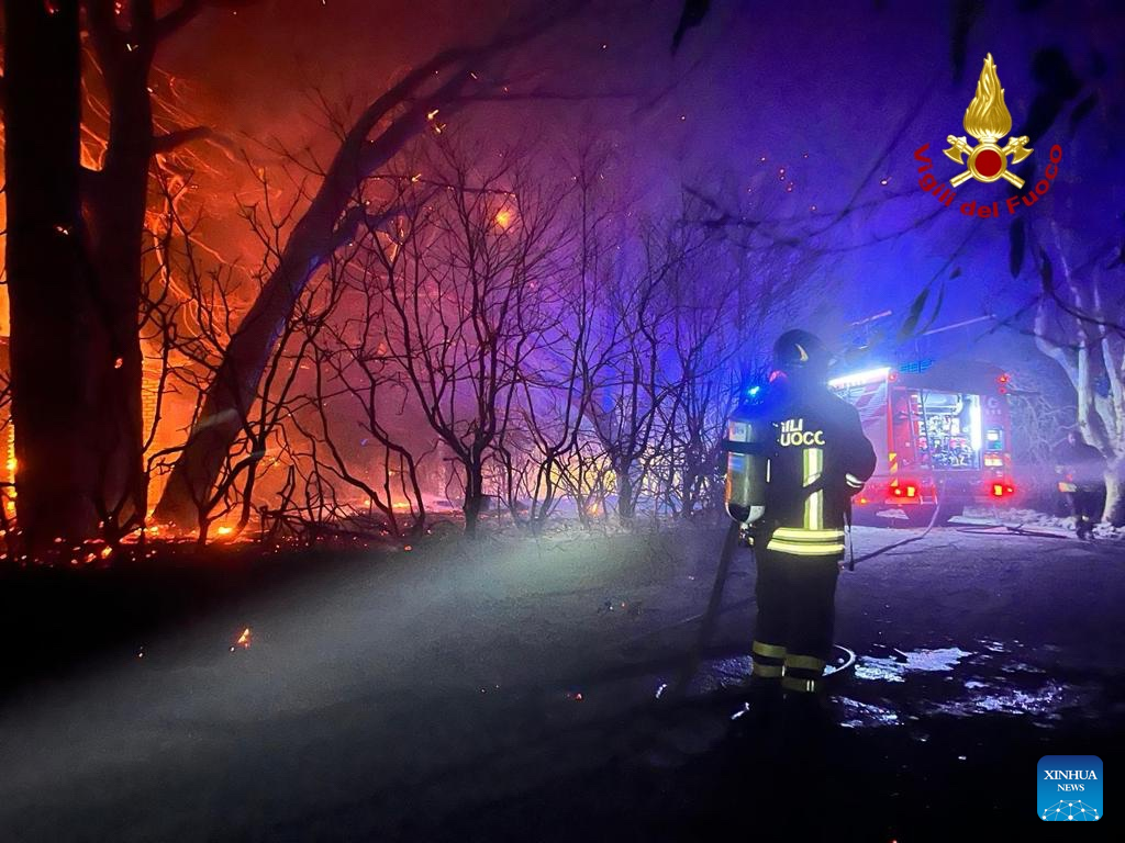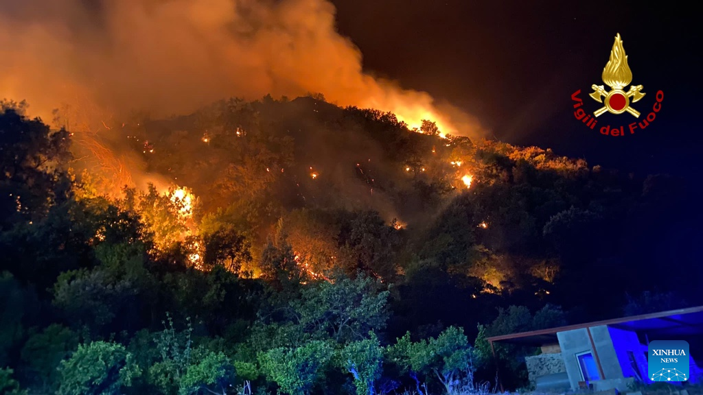 ROME, July 25 (Xinhua) -- The southern Italian island of Sicily was ravaged by fires Tuesday. Meanwhile, storms and hail have battered the northern part of Italy.