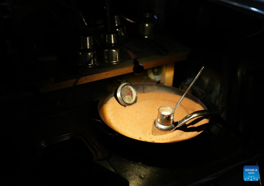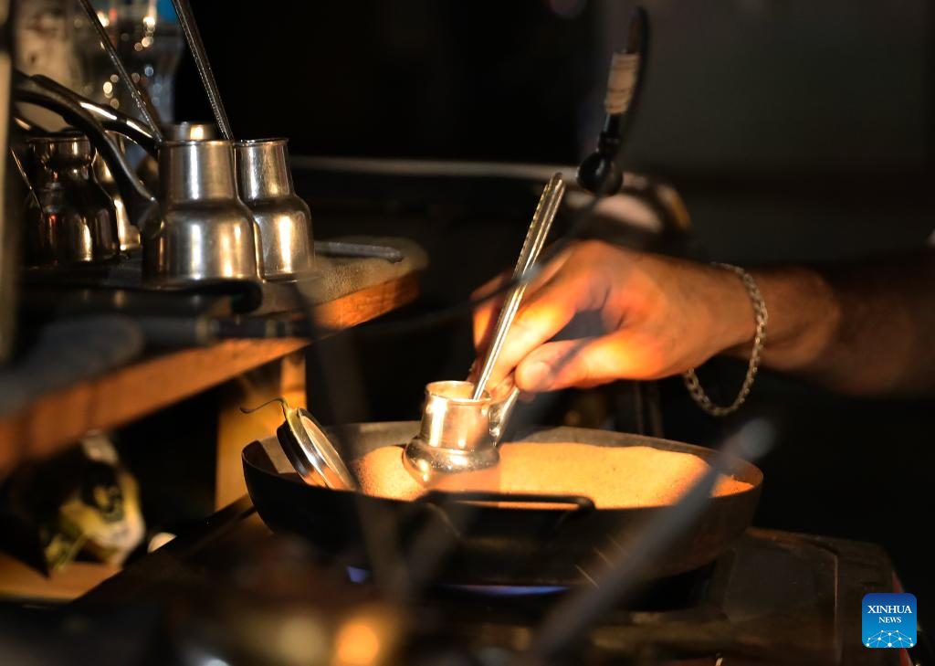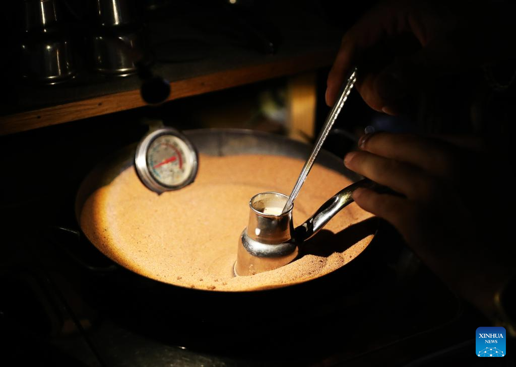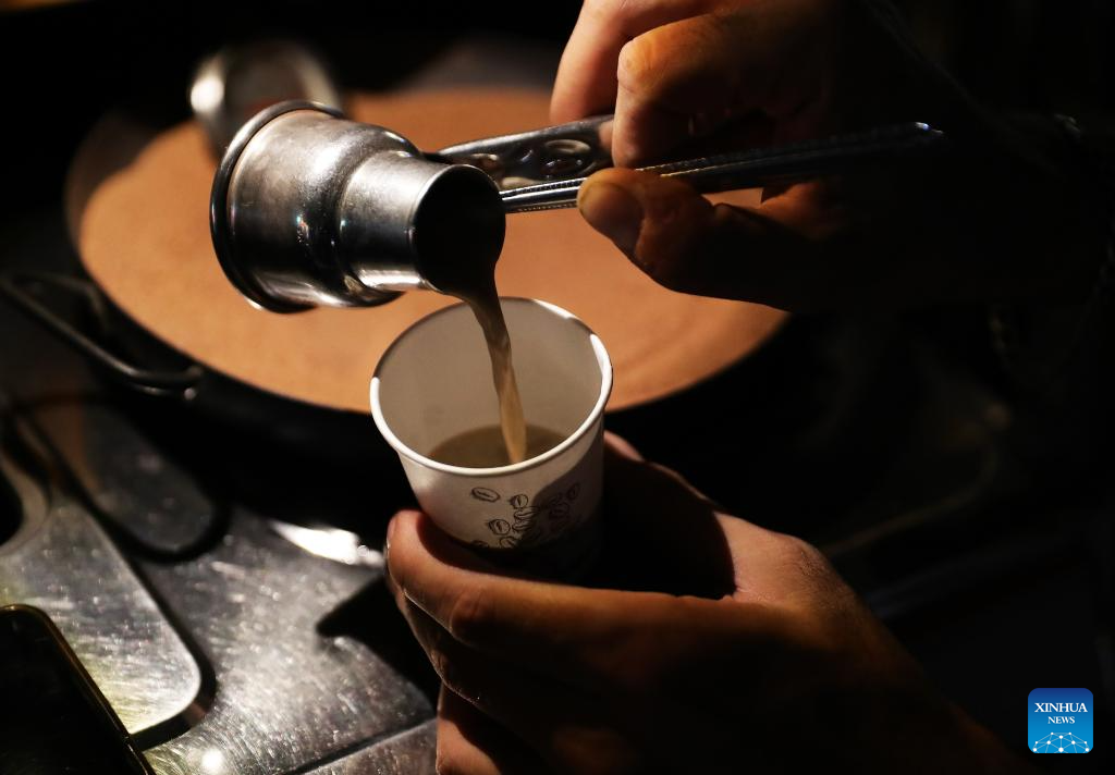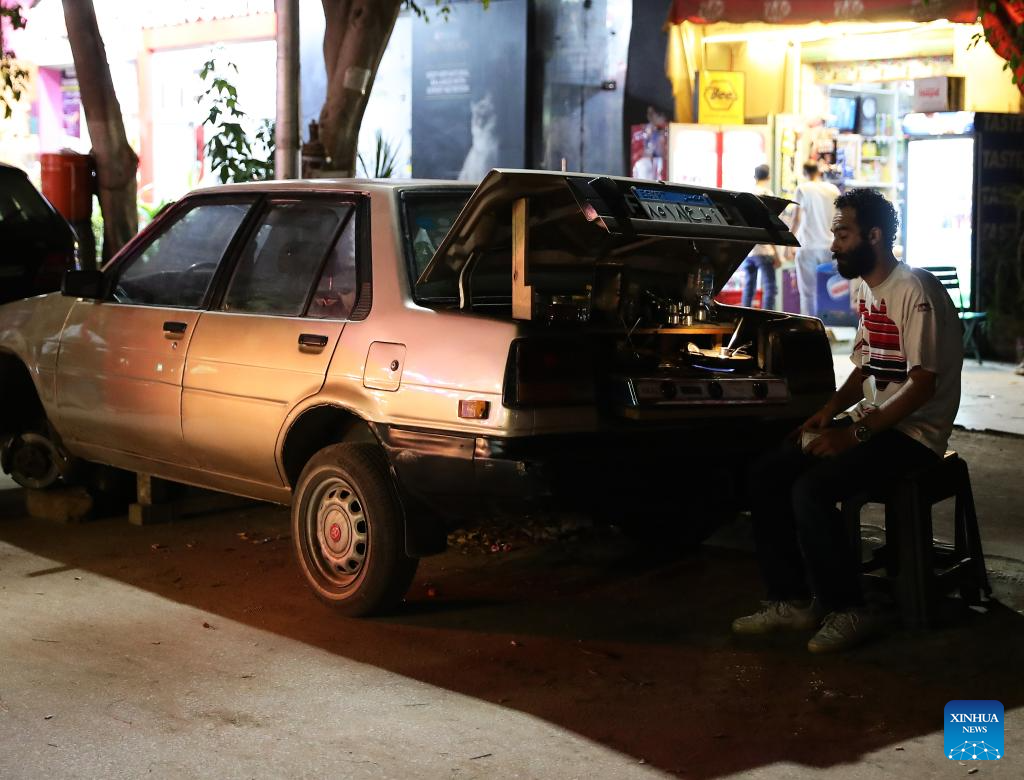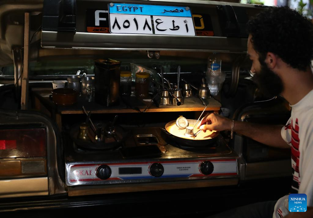 A man makes coffee at his street car cafe in Cairo, Egypt, July 25, 2023. (Xinhua/Wang Dongzhen)