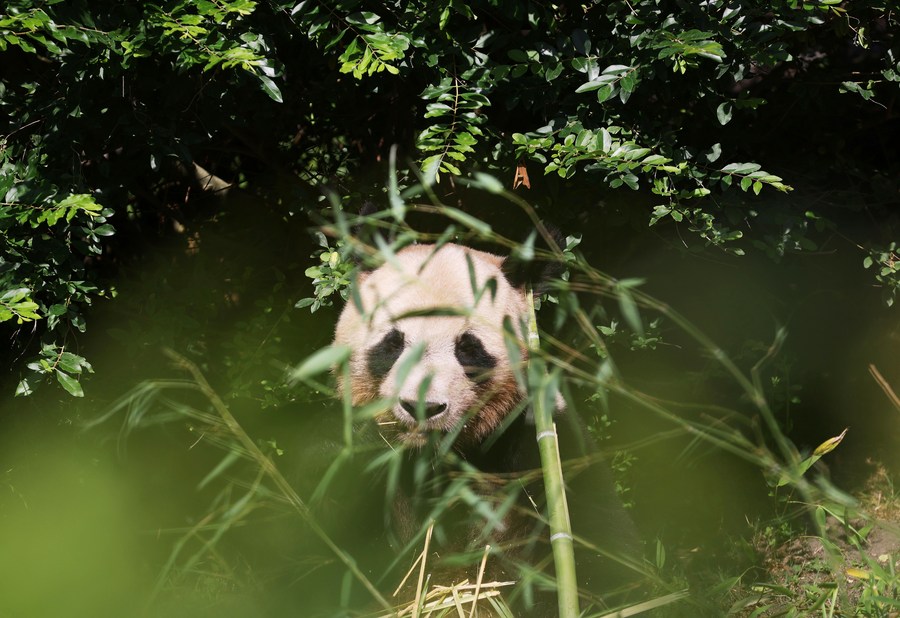 This photo taken on July 24, 2023 shows the giant panda Yuan Meng at Beauval Zoo in Saint-Aignan, France. (Xinhua/Gao Jing)