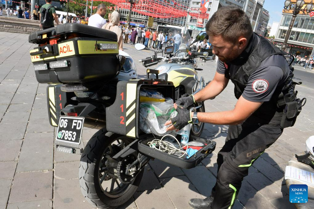 ANKARA, July 26 (Xinhua) -- Like most big cities in the world, Turkish metropolises are plagued by traffic jams. Motorbike ambulances have proved essential to provide emergency healthcare to patients in a matter of minutes.