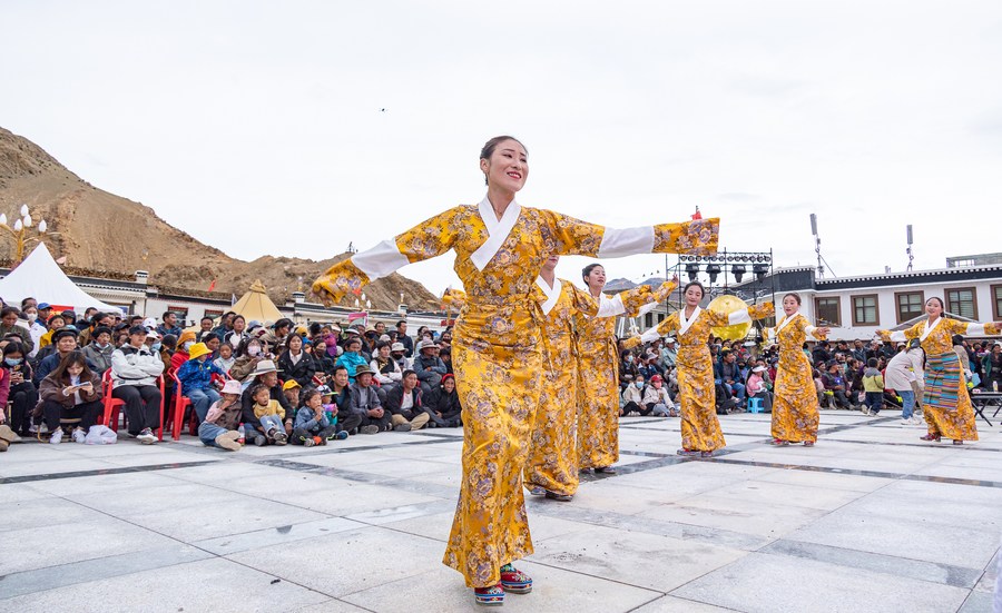 LHASA, July 25 (Xinhua) -- Applause resounded through an open space in Zhaxizom Township, southwest China's Tibet Autonomous Region, on Sunday night. The air was filled with excitement as performers presented enchanting songs and dances to the delighted crowd.