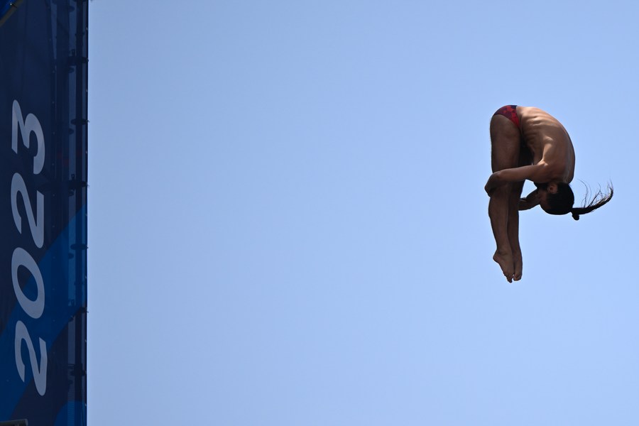 FUKUOKA, July 27 (Xinhua) -- Constantin Popovici led Romania to a 1-2 finish in the men's high diving at the World Aquatics Championships here on Thursday.