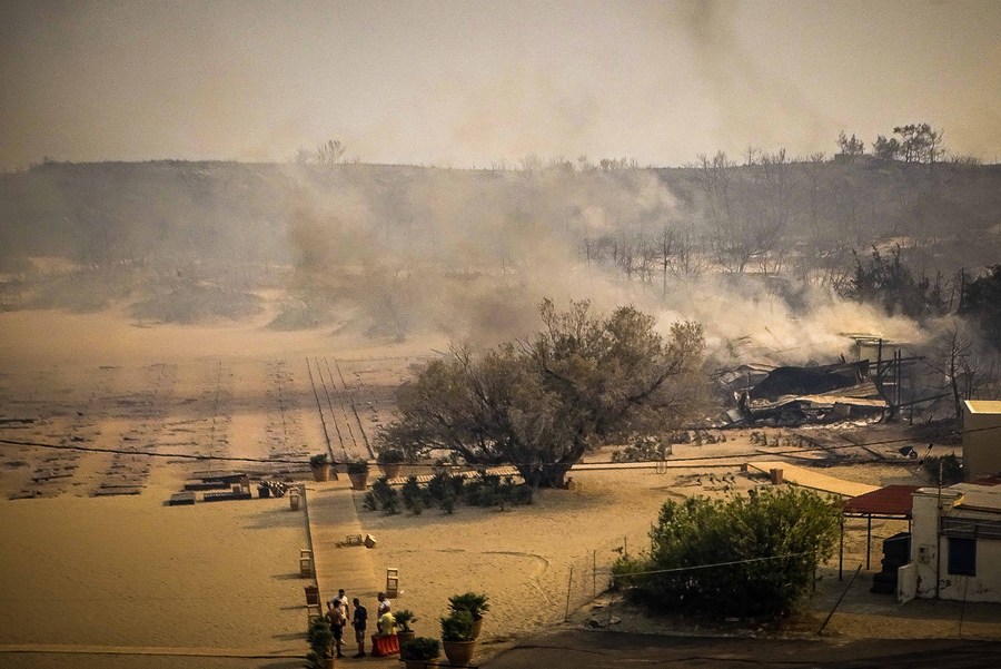 This photo taken on July 22, 2023 shows a massive wildfire raging the Rhodes island in Greece. (Photo by Argiris Mantikos/Xinhua)