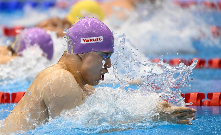 Qin Haiyang in action during the men's 50m breaststroke final at the World Aquatics Championships. (Xinhua/Xia Yifang)