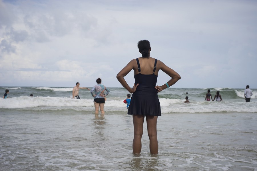 People lounge on Daytona Beach, Florida, the United States, Sept. 7, 2020. (Photo by Alan Chin/Xinhua)