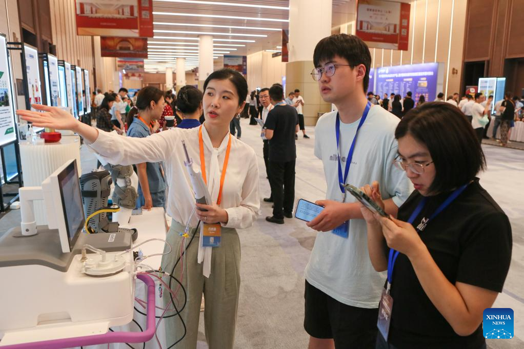People visit a match-making event of the 6th China International Import Expo (CIIE) at the National Exhibition and Convention Center (Shanghai) in east China's Shanghai, July 26, 2023.