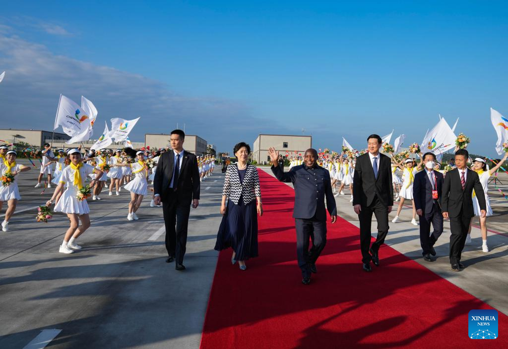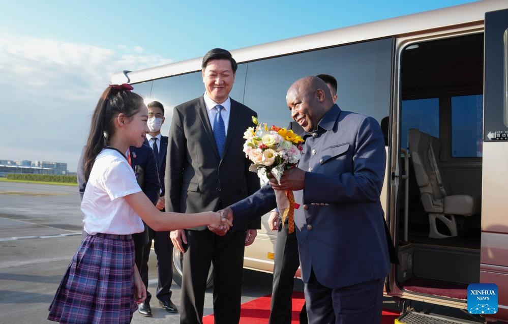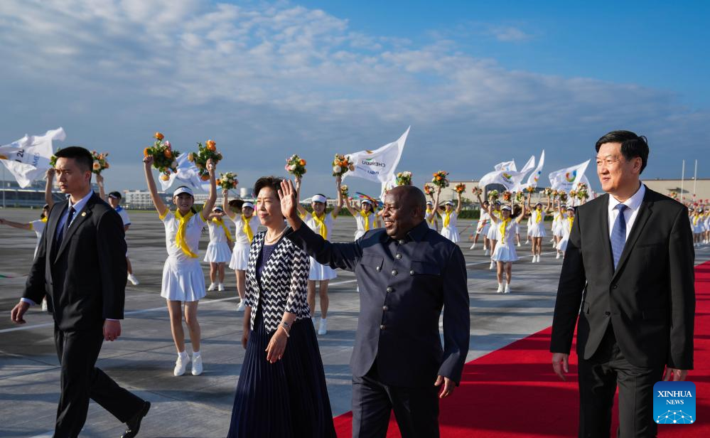 Burundian President Evariste Ndayishimiye arrives in Chengdu, capital of southwest China's Sichuan Province, July 28, 2023. Ndayishimiye on Friday arrived in Chengdu to attend the opening ceremony of the 31st summer edition of the FISU World University Games and visit China. (Xinhua/Jiang Hongjing)
