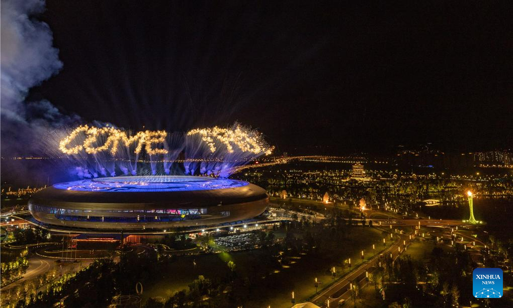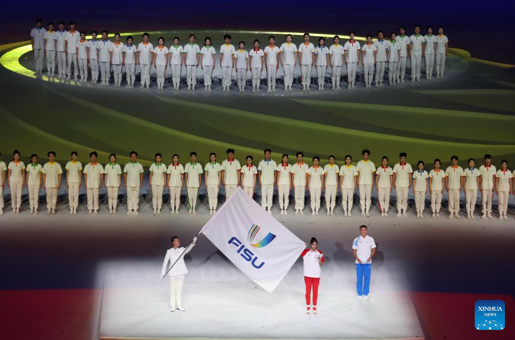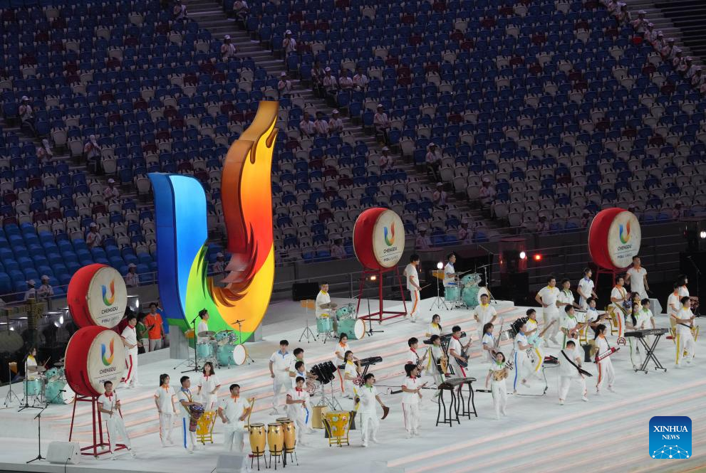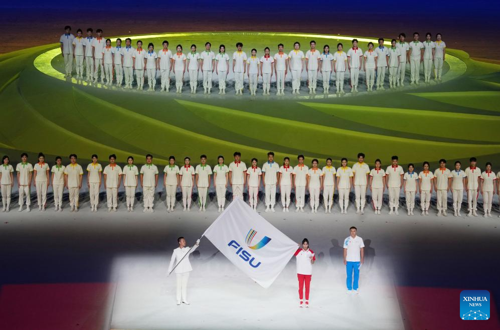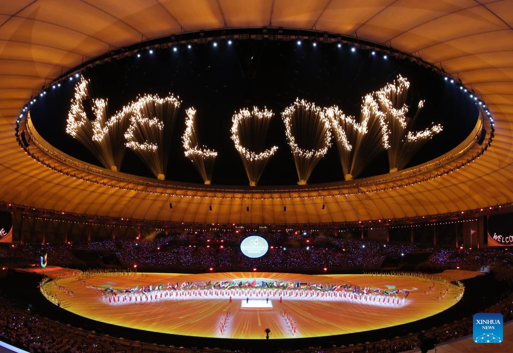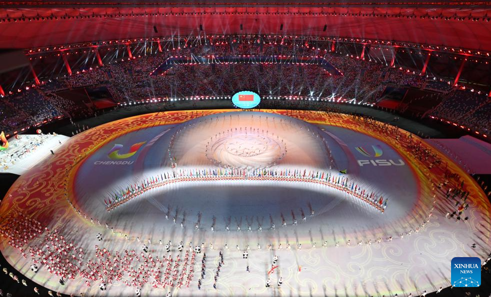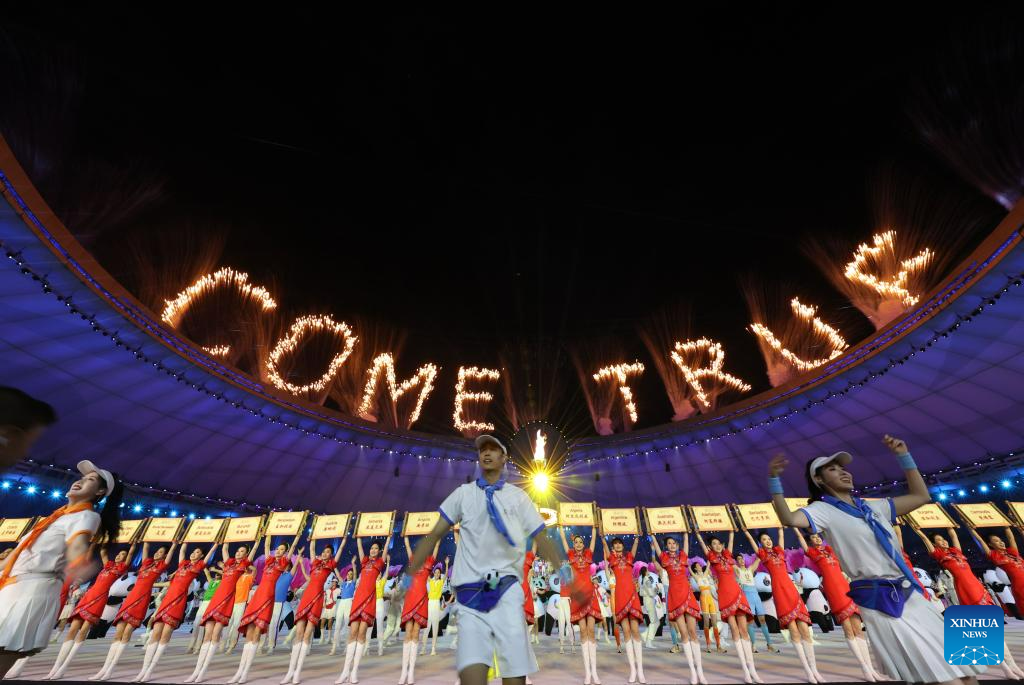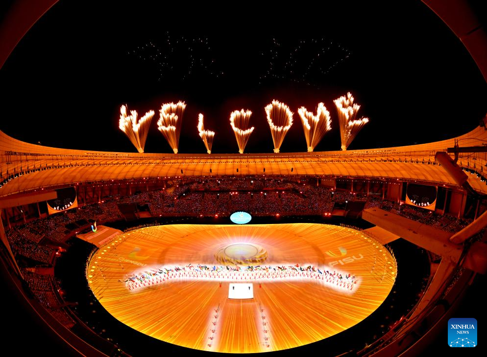 A performance is held during the opening ceremony of the 31st FISU Summer World University Games in Chengdu, southwest China's Sichuan Province, July 28, 2023. (Xinhua/Li Xin)