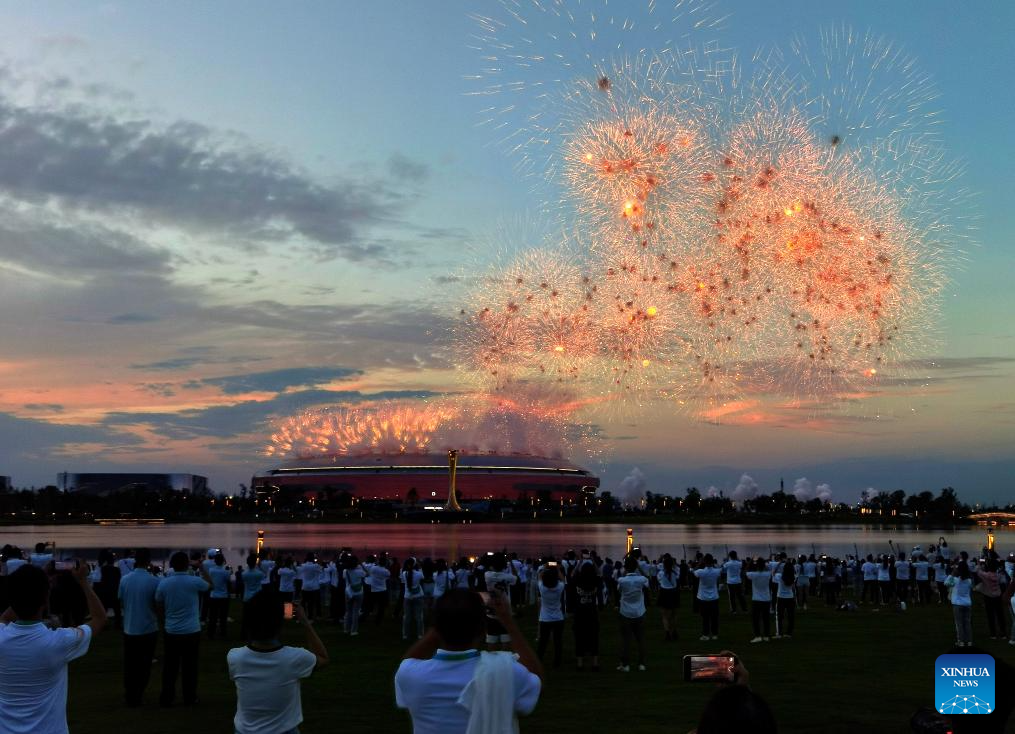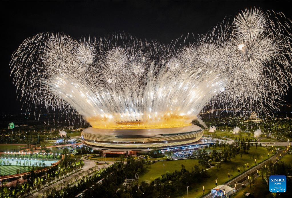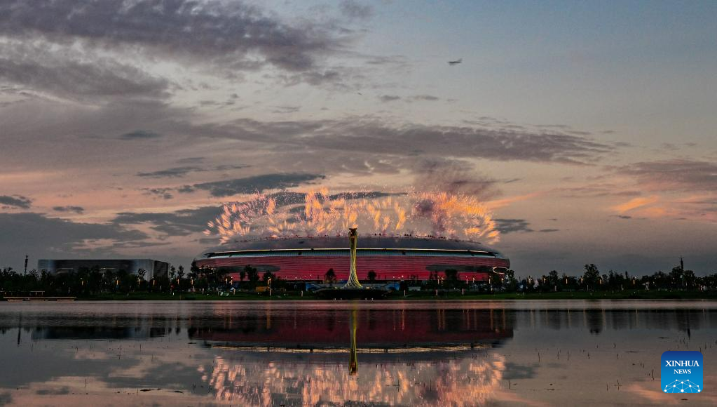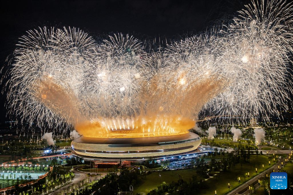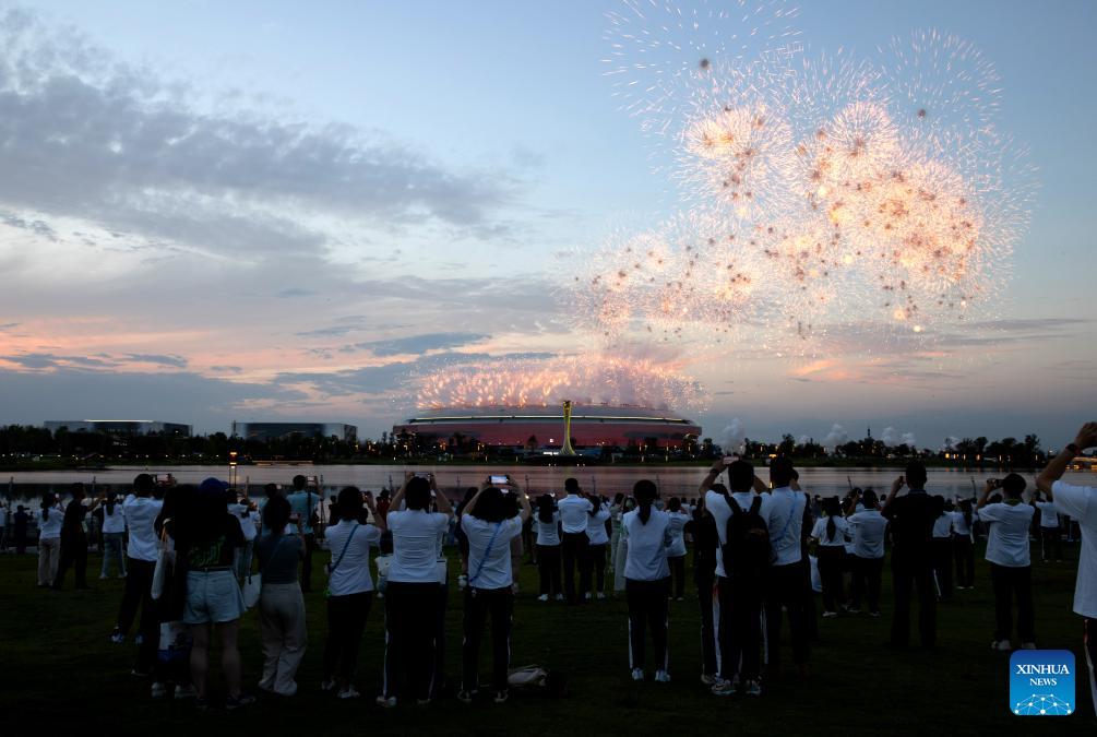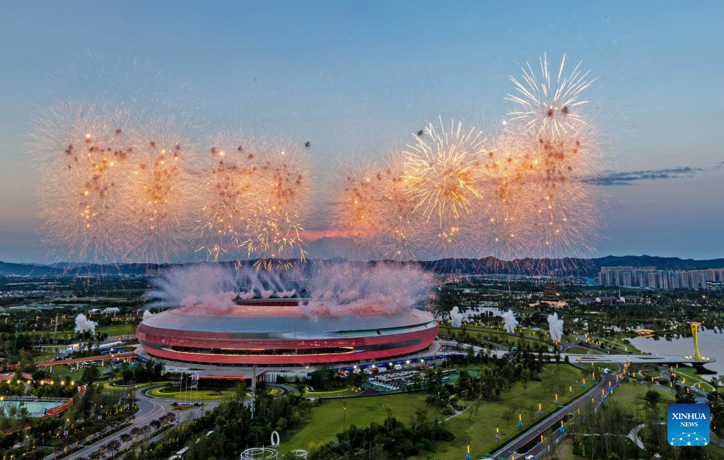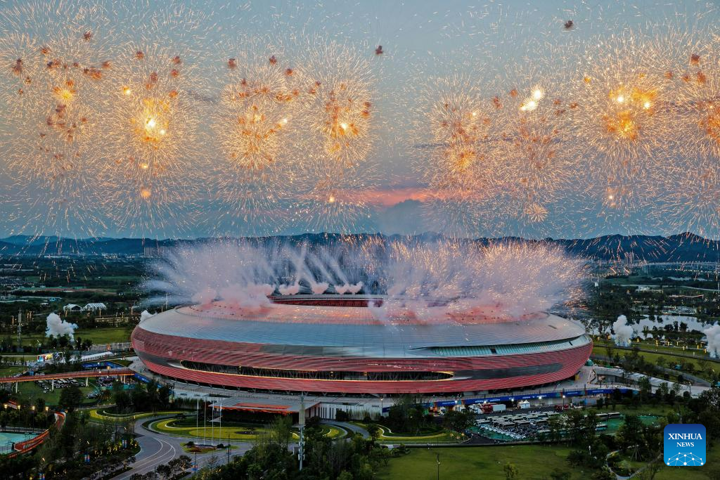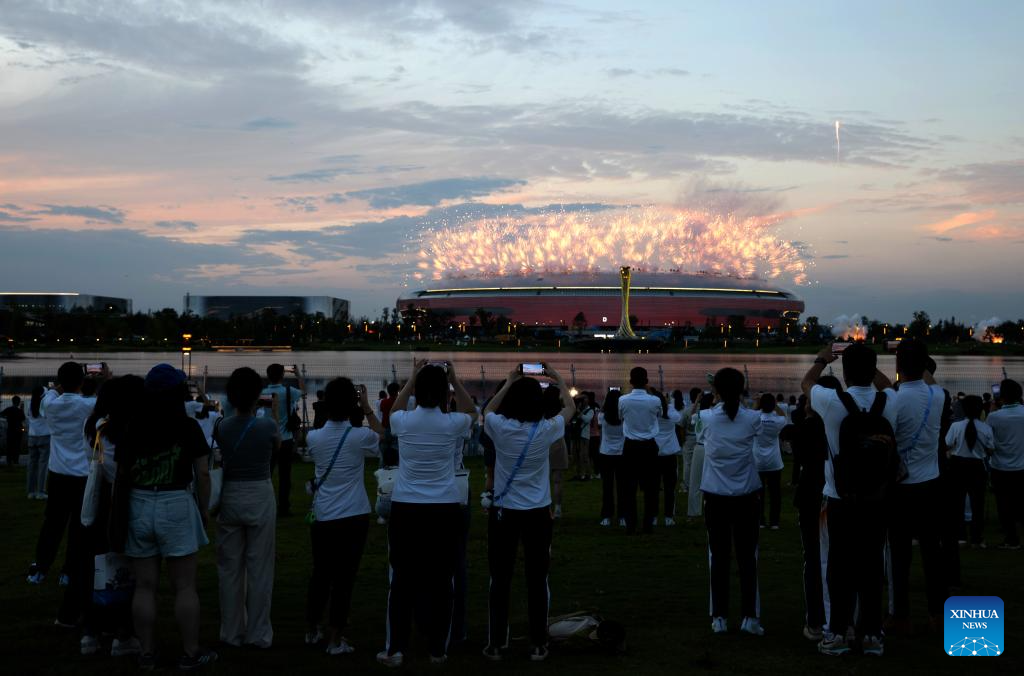 Fireworks are seen during the opening ceremony of the 31st FISU Summer World University Games in Chengdu, southwest China's Sichuan Province, July 28, 2023. (Xinhua/Wu Gang)