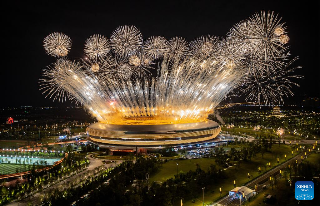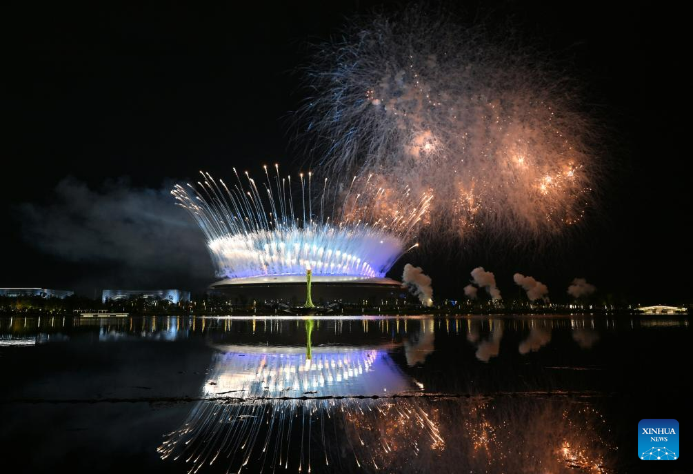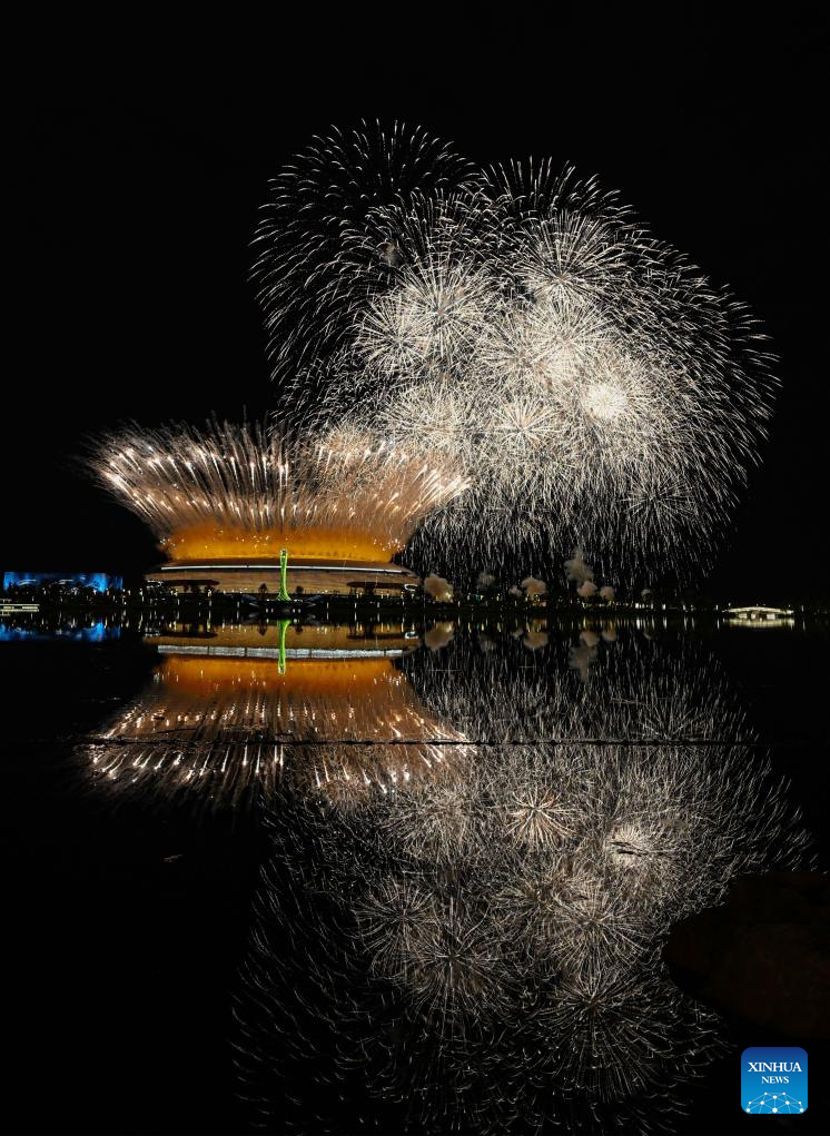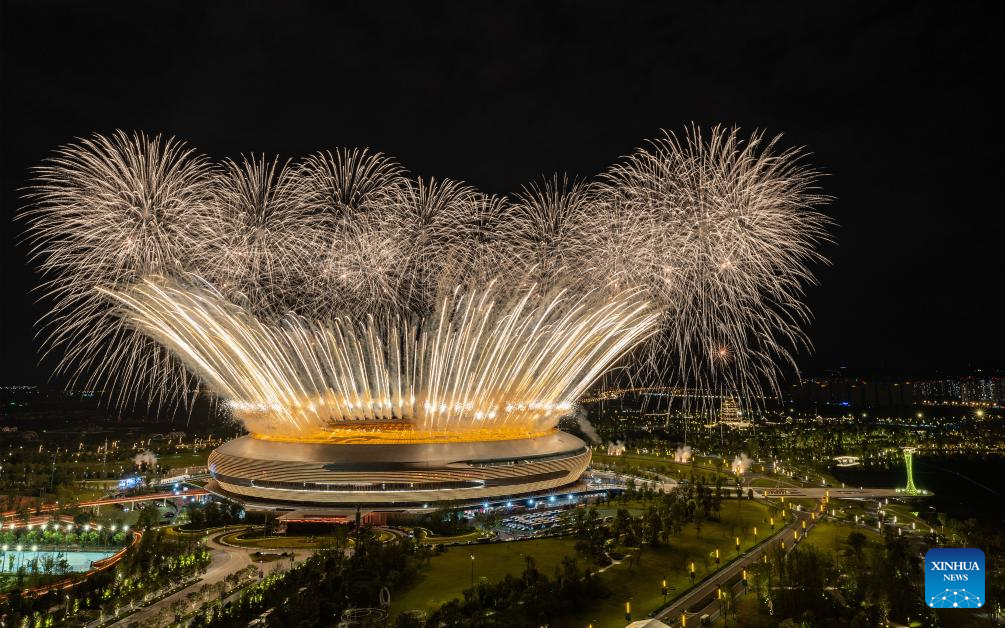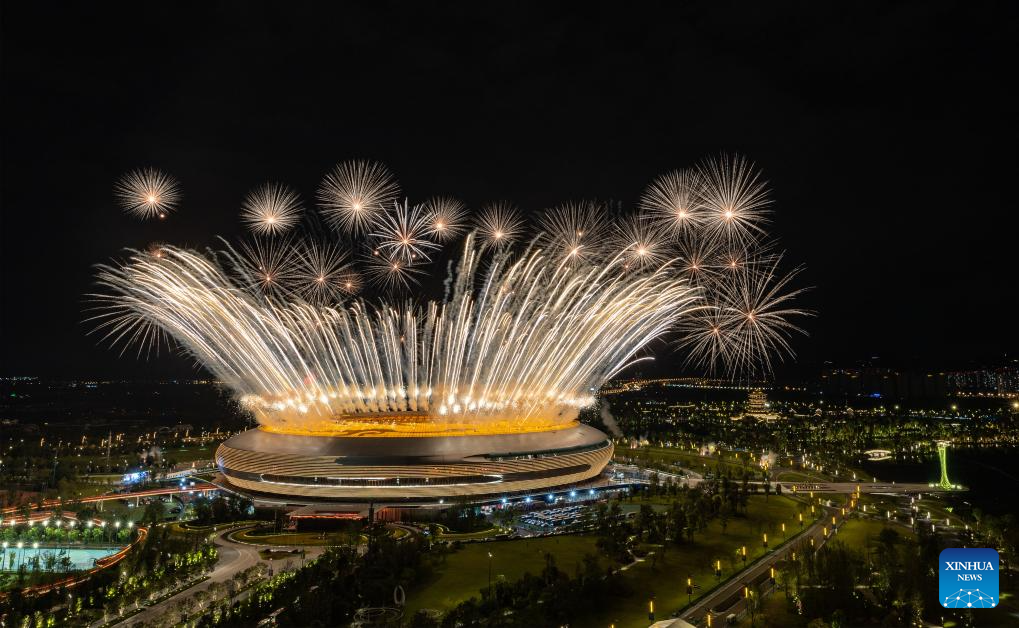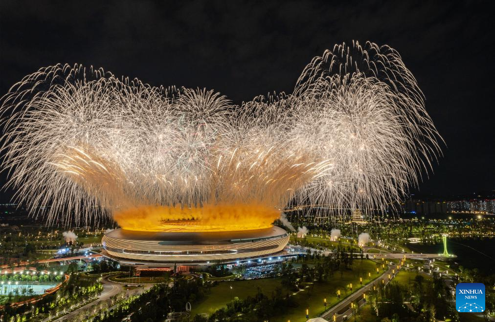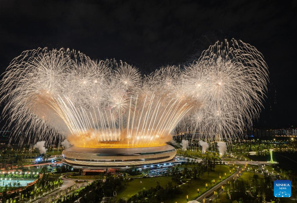 Fireworks are seen during the opening ceremony of the 31st FISU Summer World University Games in Chengdu, southwest China's Sichuan Province, July 28, 2023. (Xinhua/Wu Gang)
