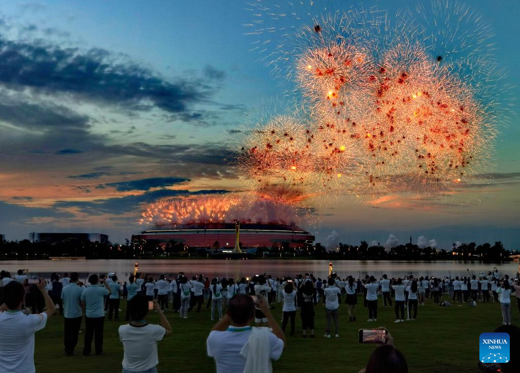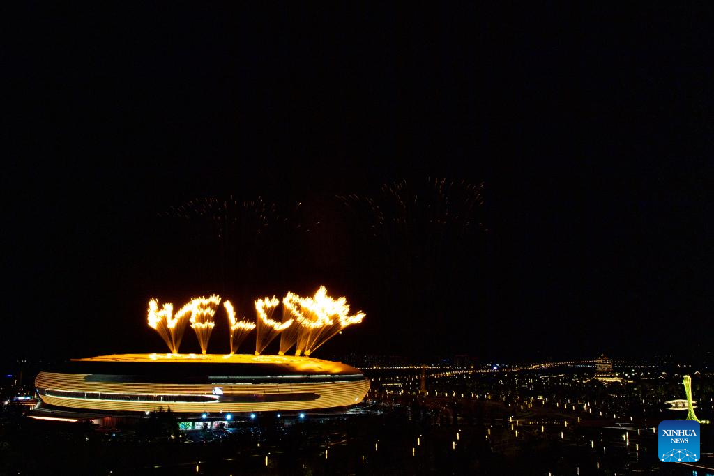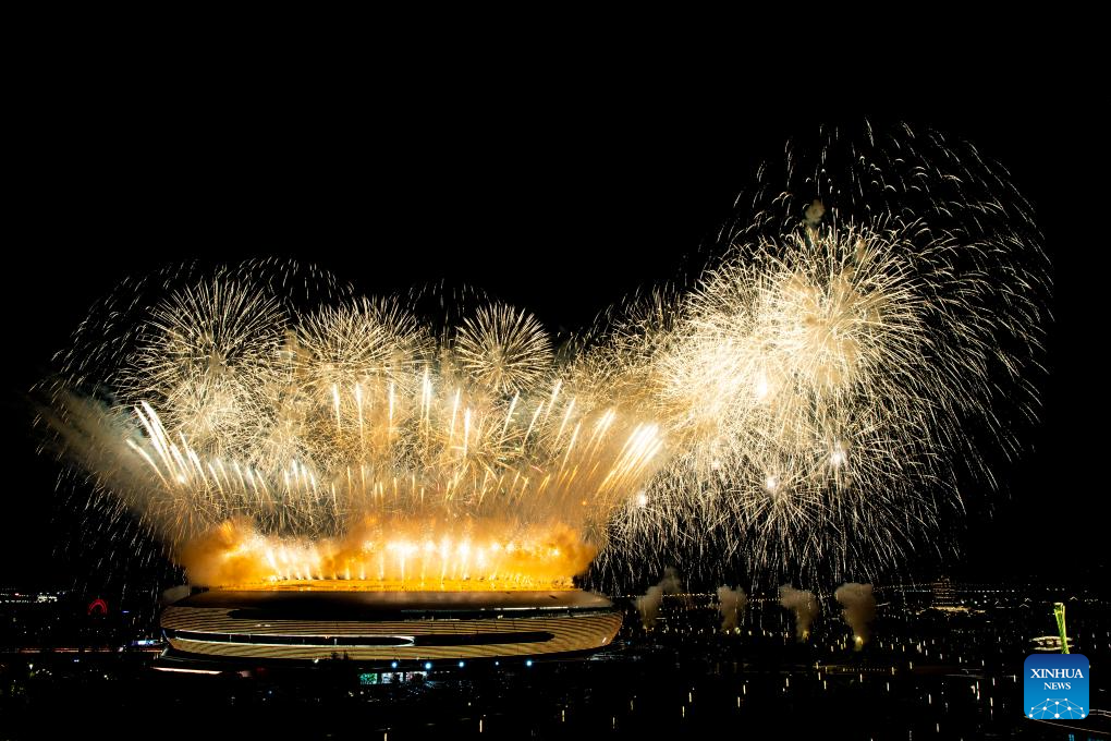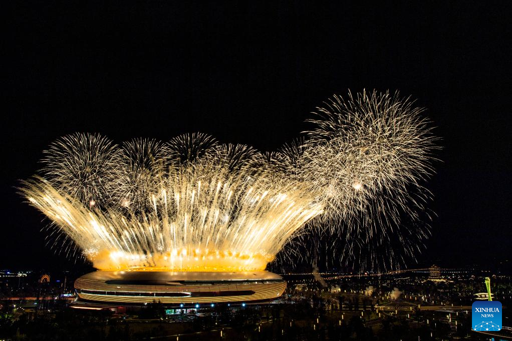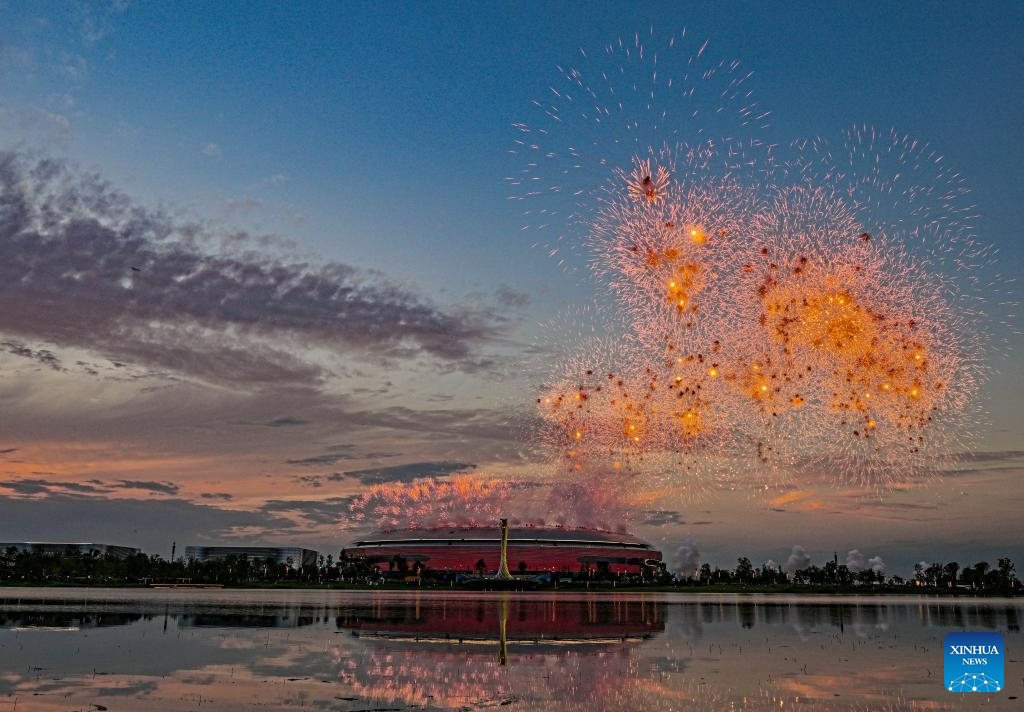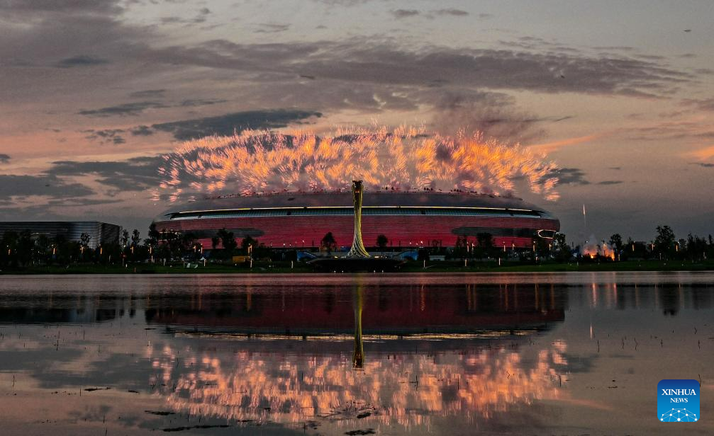 Fireworks are seen during the opening ceremony of the 31st FISU Summer World University Games in Chengdu, southwest China's Sichuan Province, July 28, 2023. (Xinhua/Yang Qing)