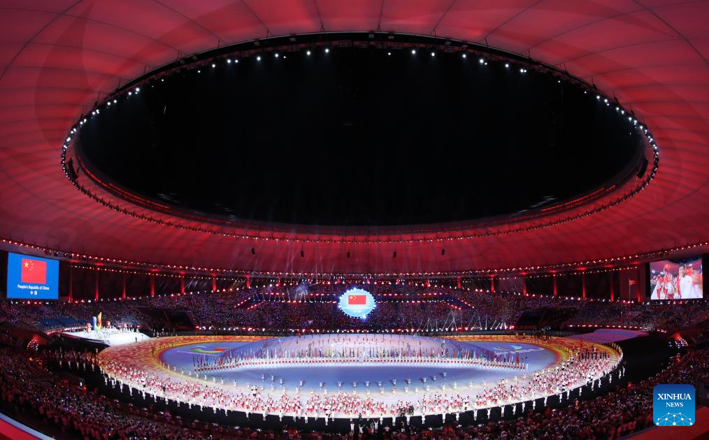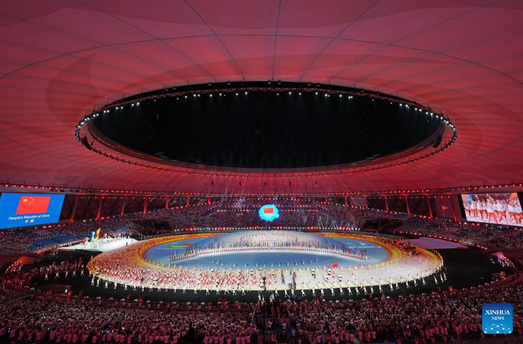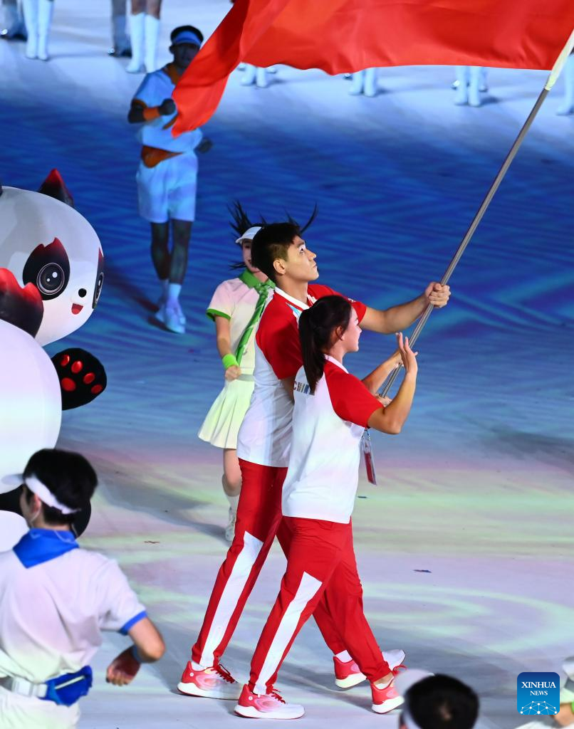 Members of China's delegation march during the opening ceremony of the 31st FISU Summer World University Games in Chengdu, southwest China's Sichuan Province, July 28, 2023. (Xinhua/Jiang Hongjing)