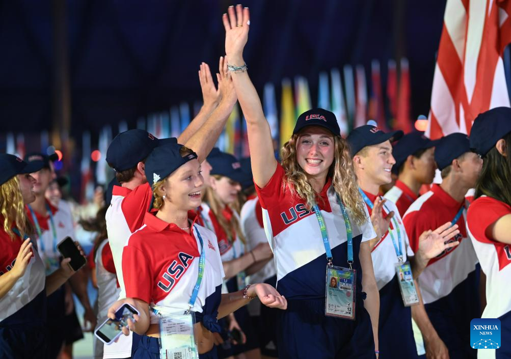 Members of the United States' delegation march during the opening ceremony of the 31st FISU Summer World University Games in Chengdu, southwest China's Sichuan Province, July 28, 2023. (Xinhua/Wang Xi)