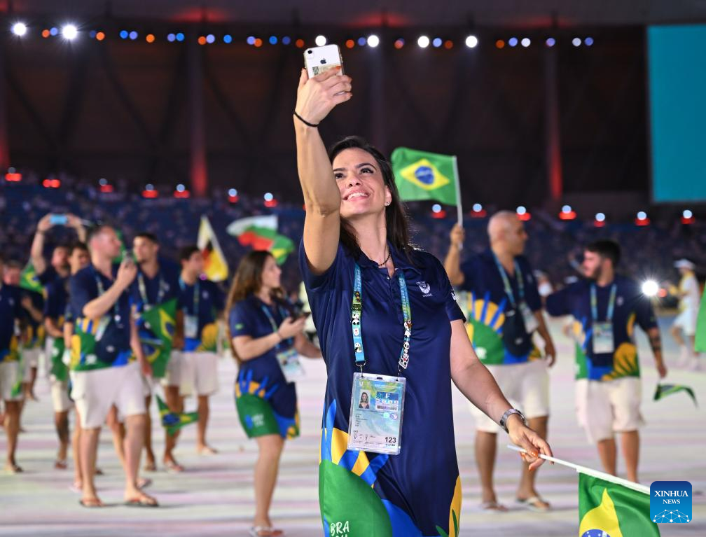 Members of the delegation of Brazil march during the opening ceremony of the 31st FISU Summer World University Games in Chengdu, southwest China's Sichuan Province, July 28, 2023. (Xinhua/Wang Xi)