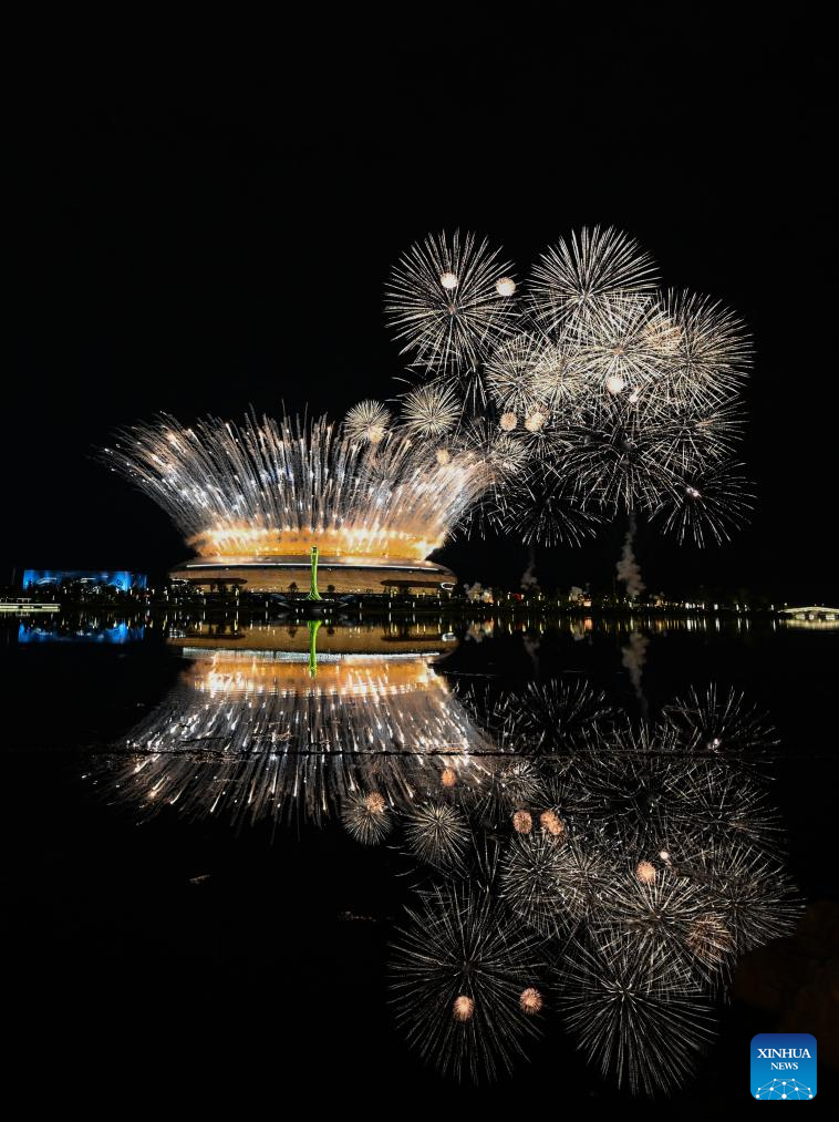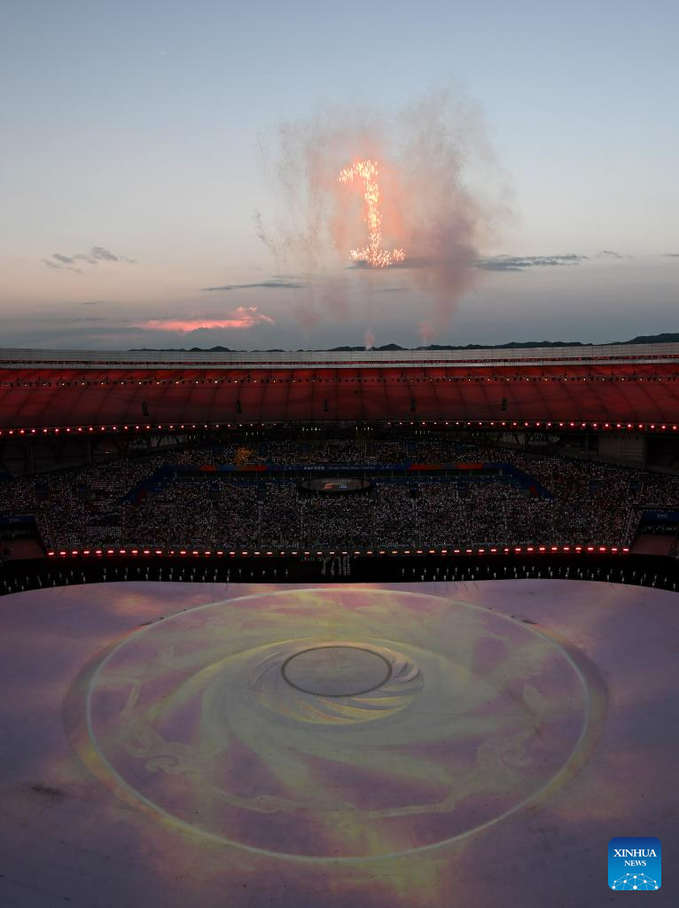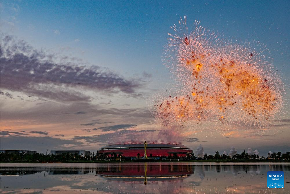 Fireworks are seen during the opening ceremony of the 31st FISU Summer World University Games in Chengdu, southwest China's Sichuan Province, July 28, 2023. (Xinhua/Jia Haocheng)