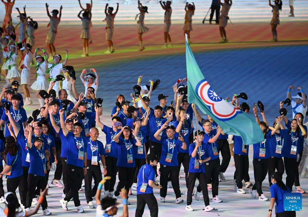 Members of the delegation of Chinese Taipei march during the opening ceremony of the 31st FISU Summer World University Games in Chengdu, southwest China's Sichuan Province, July 28, 2023. (Xinhua/Zhang Bowen)