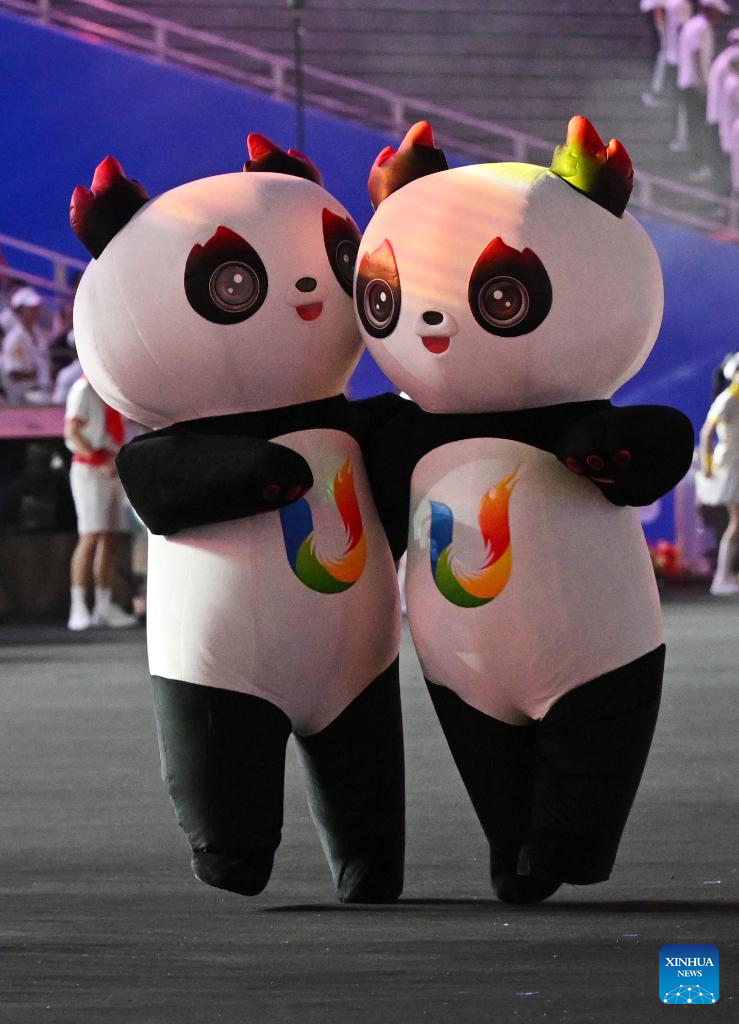 Rongbao, mascot of the Chengdu Universiade, march during the opening ceremony of the 31st FISU Summer World University Games in Chengdu, southwest China's Sichuan Province, July 28, 2023. (Xinhua/Xu Bingjie)
